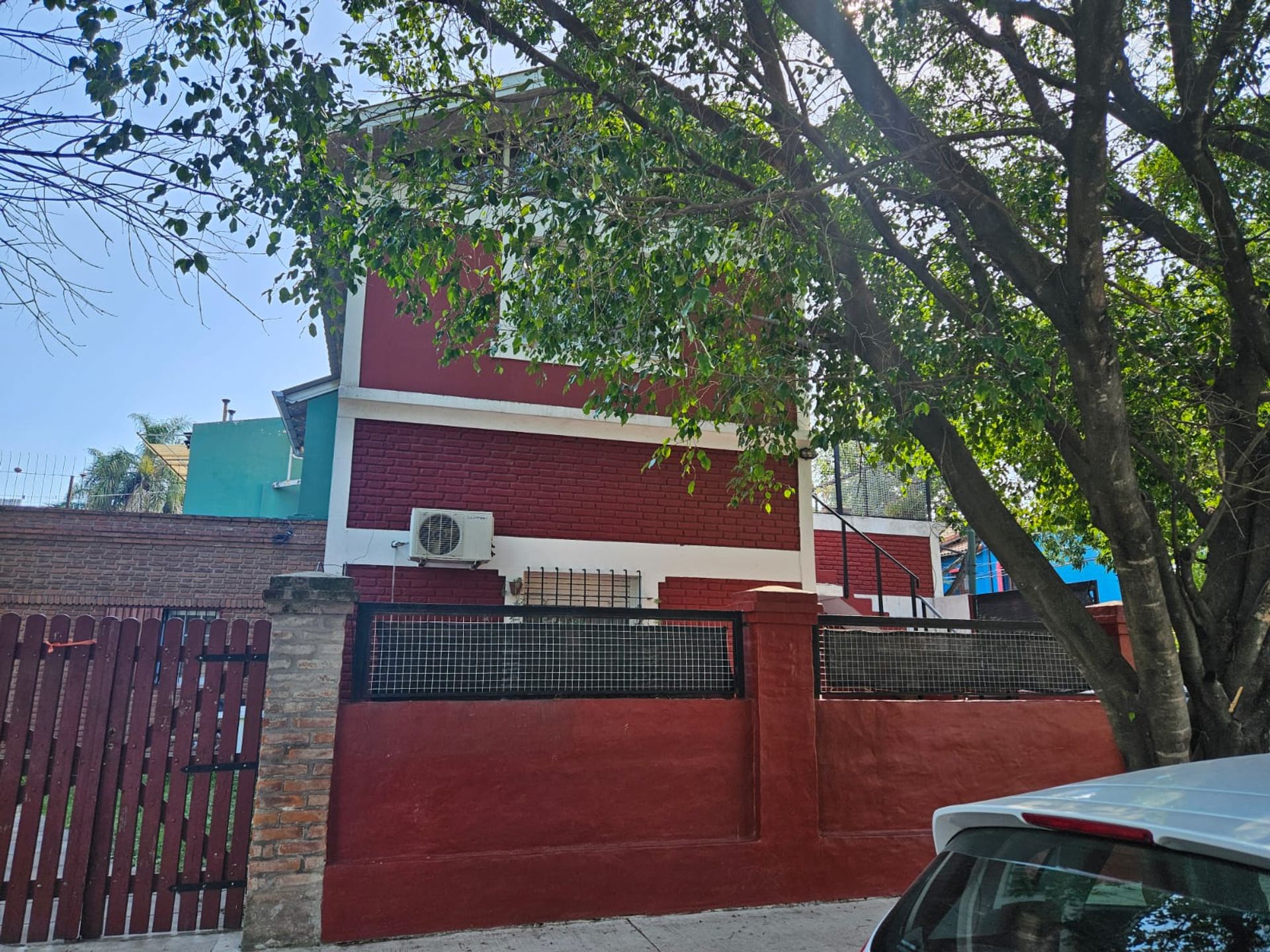 La primera casa, en planta baja, cuenta con dos dormitorios con pisos cerámicos, entrada para vehículo, jardín arbolado frontal, hall de recepción, cocina con desayunador, baño completo y patio con segunda entrada independiente. La segunda casa dispone de dos dormitorios con pisos cerámicos, living, cocina equipada, baño y patio adicional. El monoambiente en el primer piso ofrece un ambiente luminoso con doble altura, cocina, baño y una terraza de 25 m² accesible por escalera exterior.