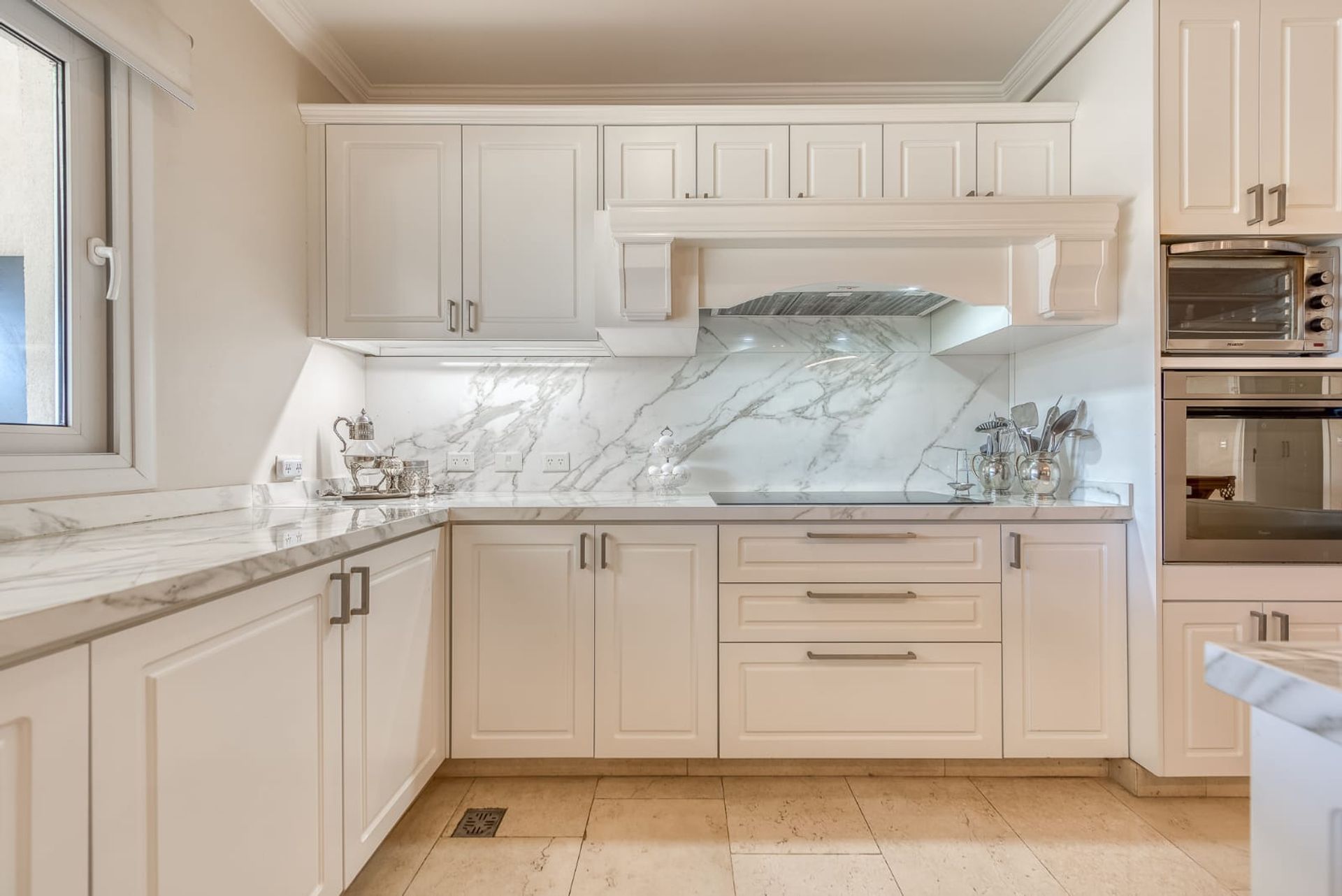 La planta alta alberga un family room que organiza tres suites. Dos de ellas son Junior, con vestidor y terraza, mientras que la Máster Suite cuenta con vestidor, baño y terraza con persianas automatizadas. Todos los ambientes están diseñados con un gusto refinado y con un estilo que combina lo clásico con toques modernos.