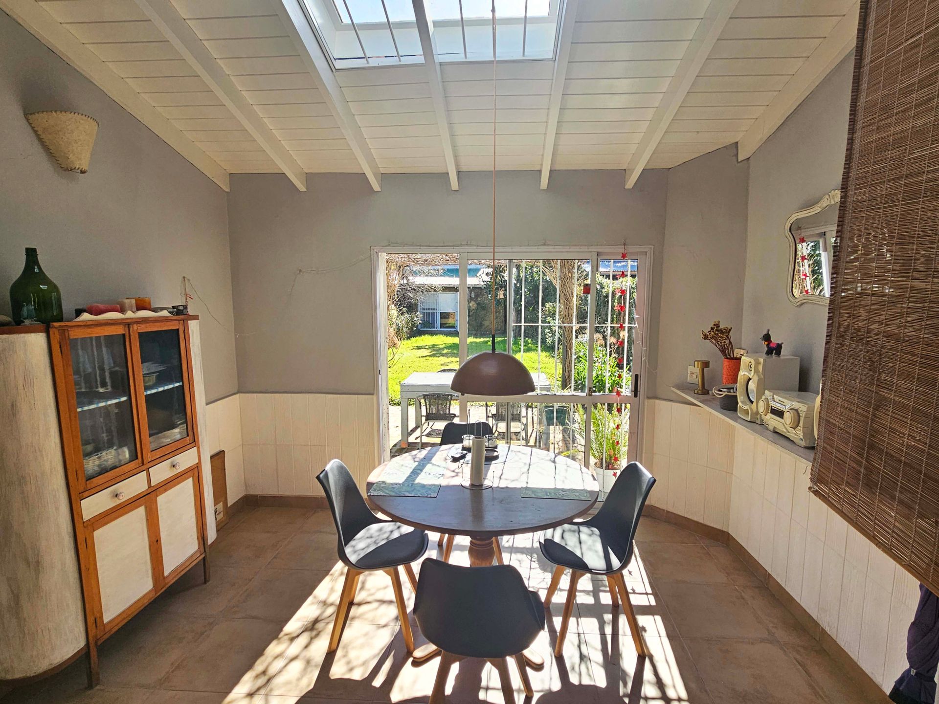 Casa de 3 ambientes separada de la línea municipal. Living de 5,10 × 3,20 m. Comedor de 2,70 × 3,60 m, luminoso con claraboyas que inundan el espacio de luz natural. Dormitorio 1 de 3,55 × 3,50 m. Dormitorio 2 de 7,40 × 3,50 m, divisible para ampliar el potencial habitacional. Baño completo de 2,45 × 1,60 m con bañera. Toilette de 2,30 × 1,00 m. Cocina de 3,10 × 3,30 m. Hall de distribución de 1,55 × 1,22 m. Galería que conecta con el comedor. Amplio jardín parquizado de 23 m × 8,66 m libres, con paso lateral del frente al jardín. Termotanque y calefacción por tiro balanceado.