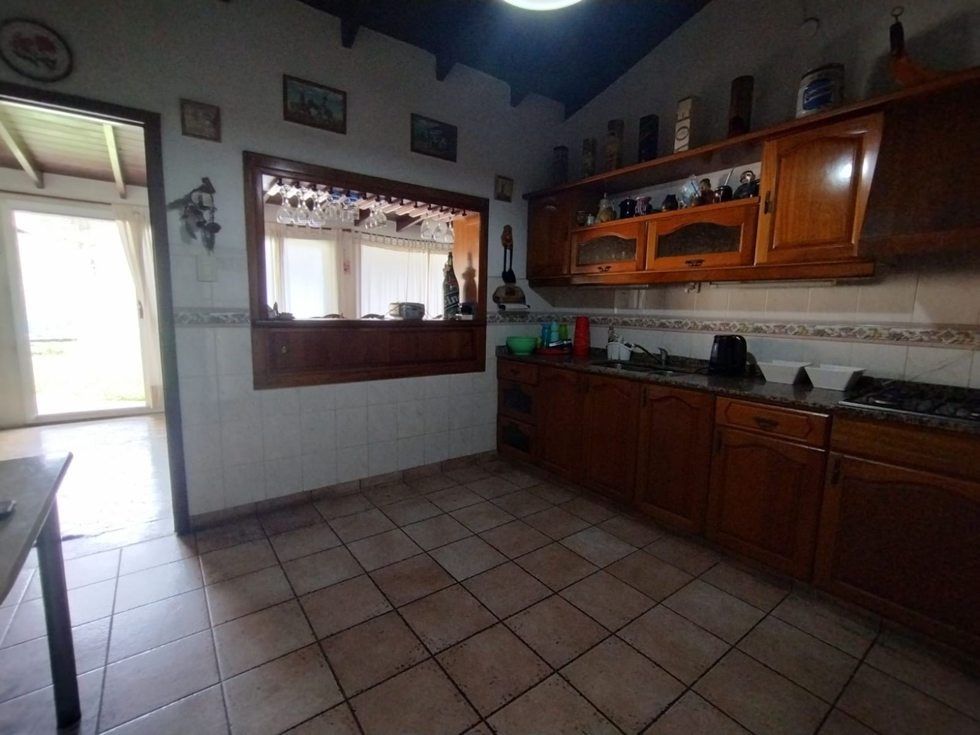 La cocina es cómoda y funcional, con espacio para una mesa de comedor diario. Desde allí se accede a una amplia galería cubierta que recorre todo el ancho del terreno, con ventanales que la integran visualmente al jardín. Este espacio exterior resulta ideal para disfrutar del aire libre, con una pileta de generosas dimensiones y parrilla.