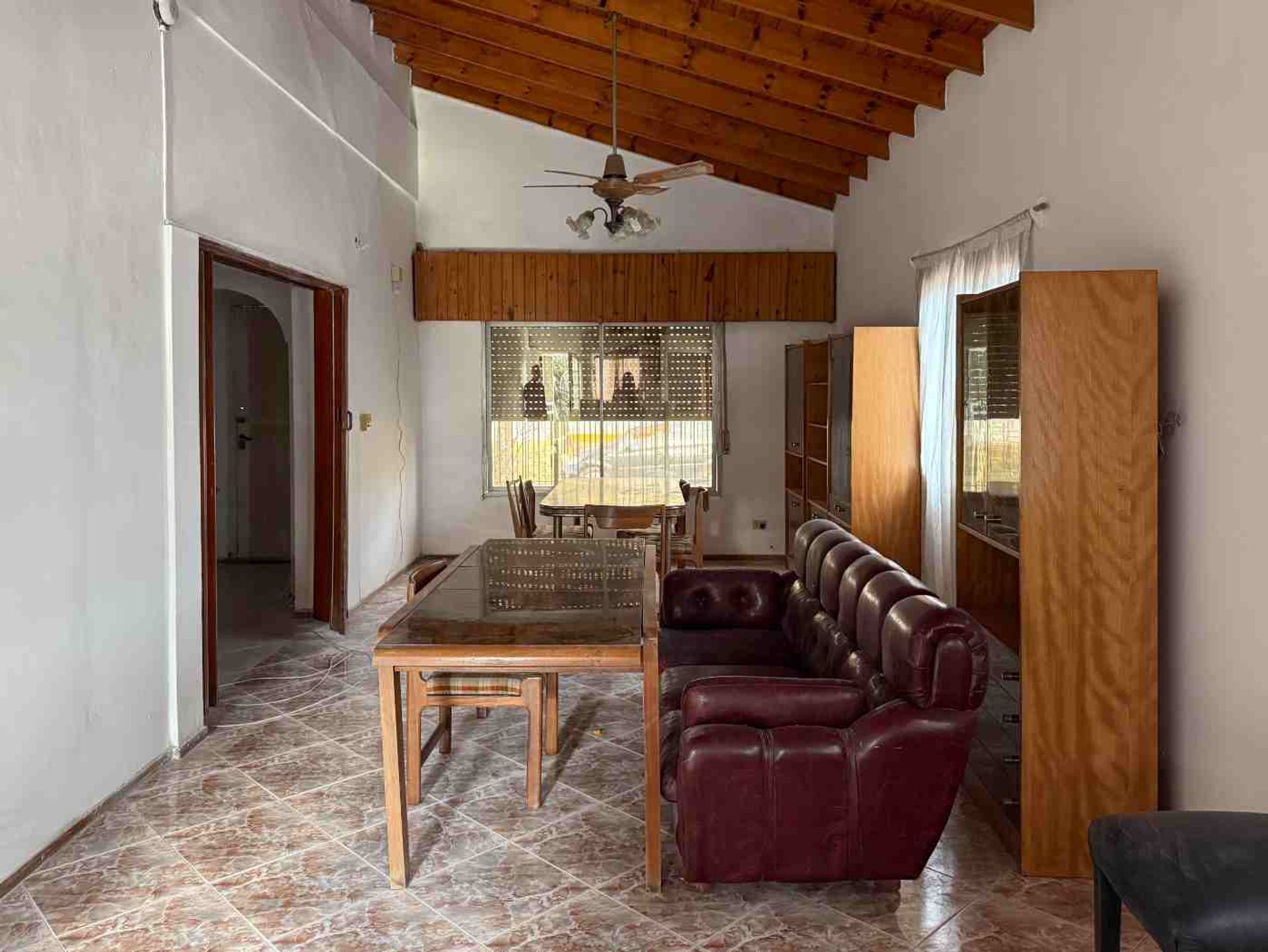 En el exterior, la casa dispone de entrada de auto y garaje cubierto para dos vehículos, que también puede funcionar como galpón, accesible por la calle Celina Voena. Un jardín bien cuidado incluye parrilla, mesada y plantas frutales, y el techo de la zona comedor combina losa de hormigón con tejas francesas, aportando un toque de elegancia clásica.