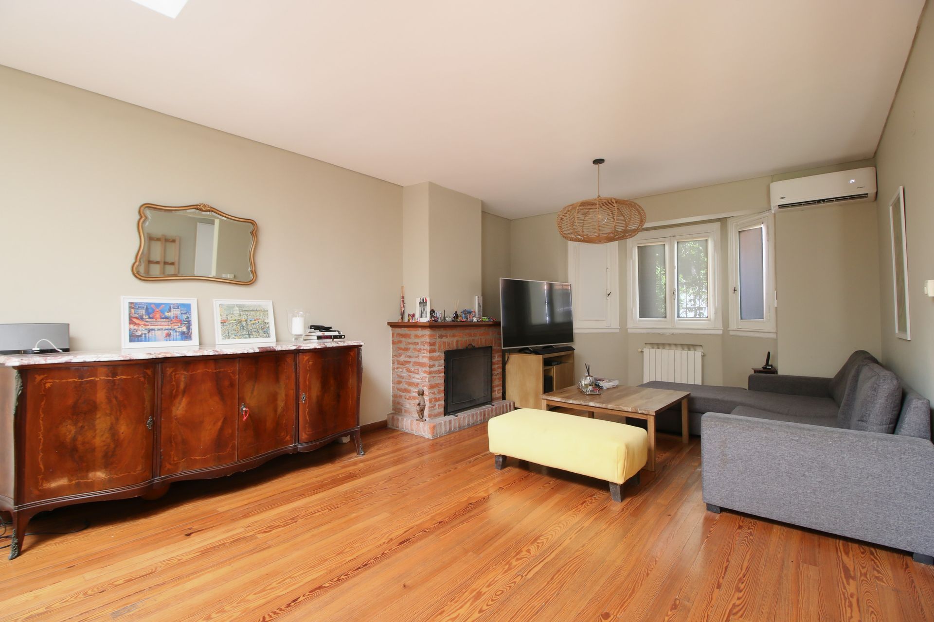 Al ingresar se abre un retiro con jardín y portón corredizo que brinda un espacio de guarda coche. El hall de recepción dispone de placard y conduce a una sala de estar con hogar a leña y una ventana bow window que inunda el ambiente de luz natural. El living comedor, con pisos de madera, se conecta a una cocina funcional con muebles sobre y bajo mesada, toilette, lavadero independiente y un playroom que da a un hermoso jardín con parrilla. Desde el playroom se accede a una terraza/azotea a través de una escalera caracol.