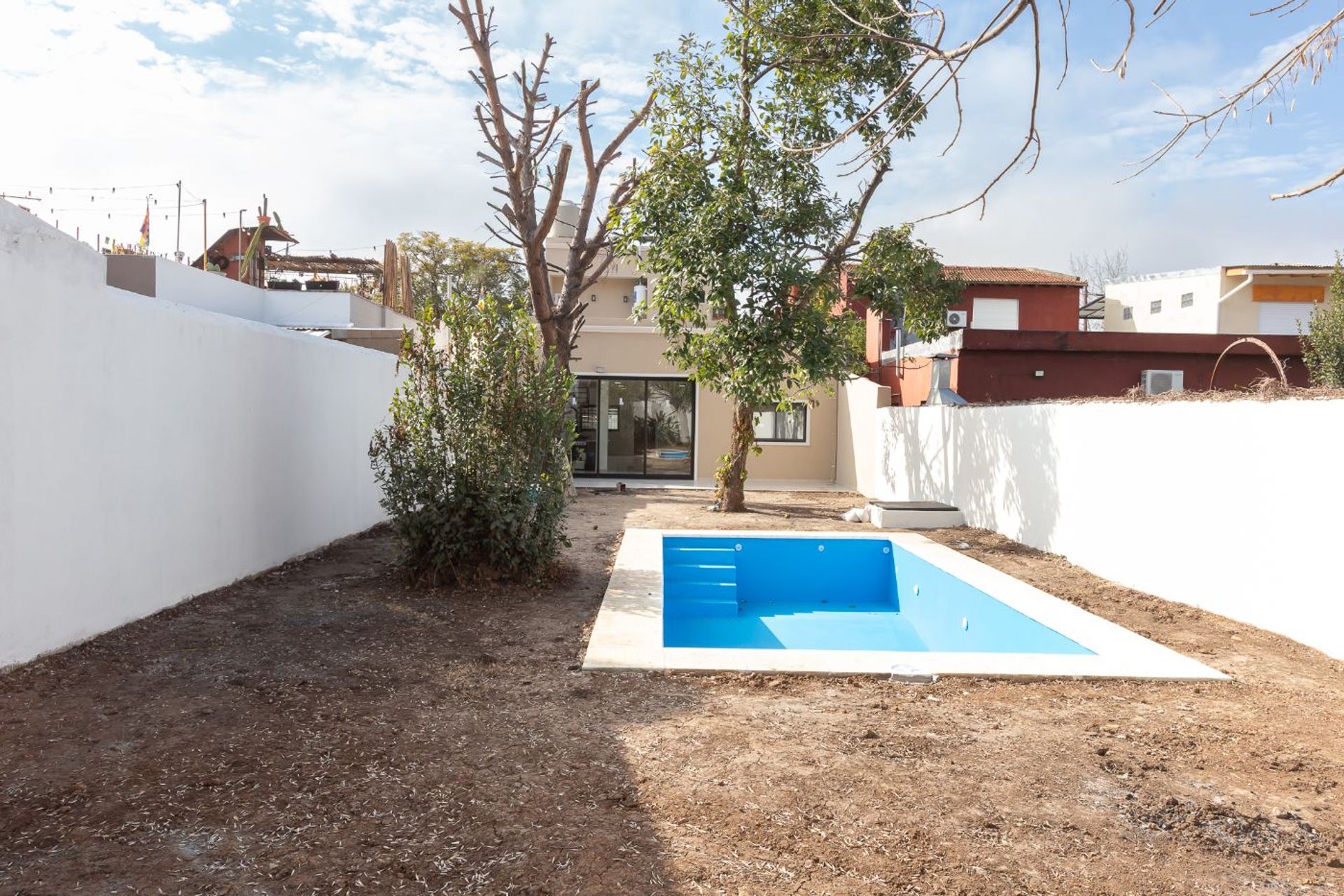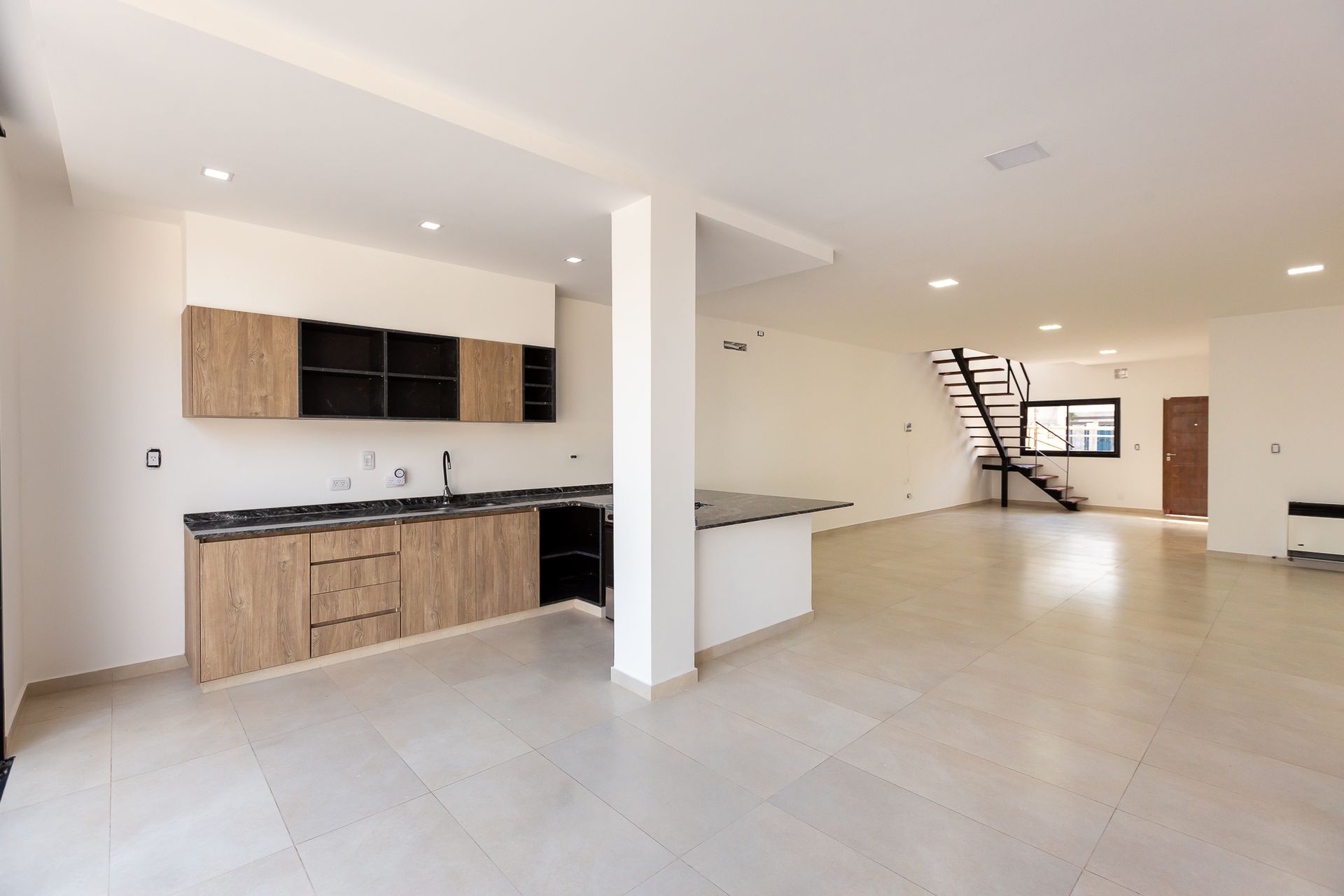En la planta baja, la entrada permite el acceso de dos vehículos. Se dispone de una habitación amplia frente a la casa y otra con vista al patio. Un baño completo con antebaño complementa el nivel. El amplio living comedor, integrado con una cocina contemporánea, cuenta con isla central, muebles a medida y mesada de granito negro Boreal. Un gran ventanal abre al patio, donde se encuentran la parrilla y la pileta, creando un ambiente ideal para reuniones al aire libre.