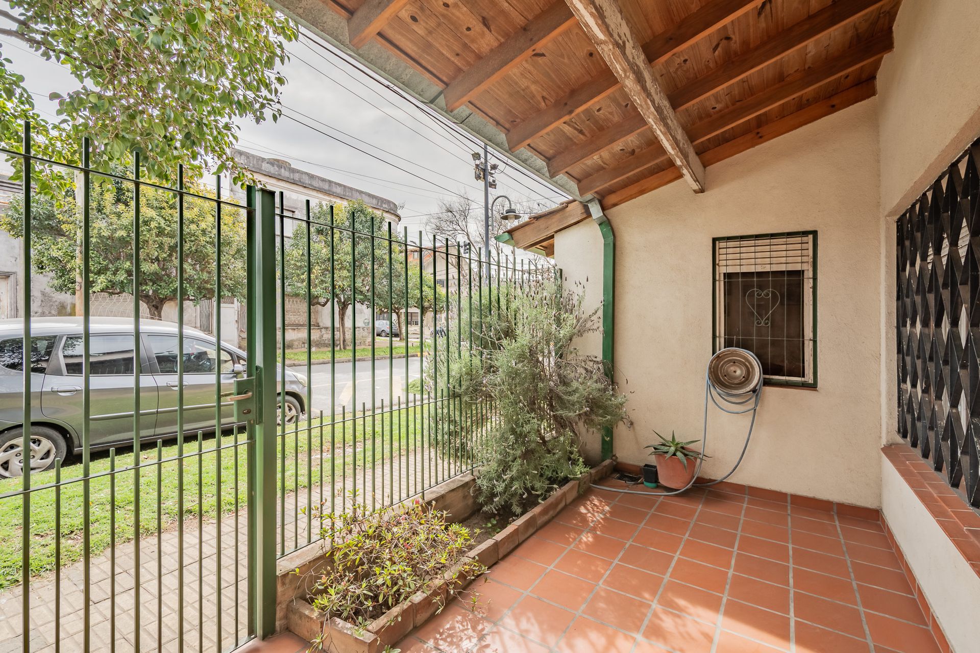 En la planta baja se encuentra un living y comedor separados por una elegante puerta de dos hojas, con la posibilidad de crear un tercer dormitorio independiente, completo con placard y ventanal a la calle. Un baño completo con bañera complementa el espacio. Un amplio dormitorio con placard y ventanal al patio brinda privacidad y luminosidad. La cocina, con salida al patio y al garaje, se integra con un patio trasero en forma de L, ideal para actividades al aire libre.
