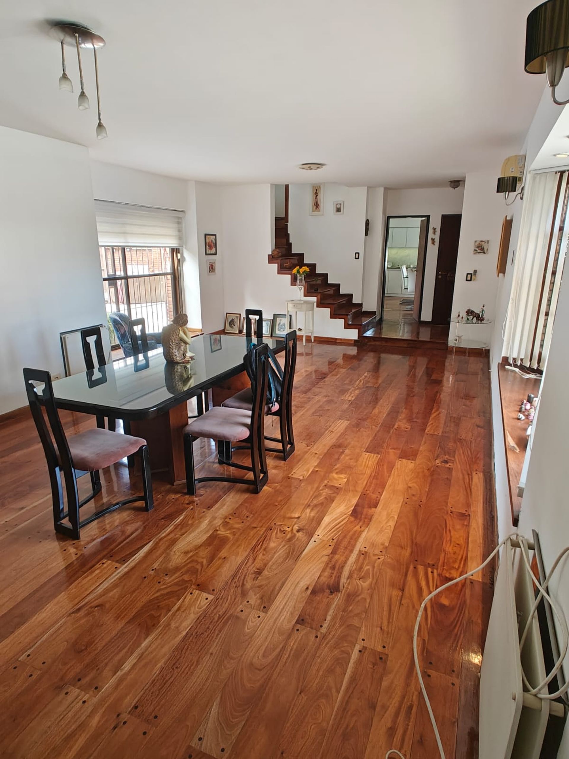 El primer nivel alberga un living‑comedor de generosas dimensiones, con ventanales que dan al jardín y aportan una sensación de amplitud y luz natural. La cocina moderna, totalmente equipada, cuenta con un comedor diario y acceso directo al patio, ideal para disfrutar de momentos gastronómicos al aire libre. Los tres dormitorios son espaciosos y equipados con placares empotrados; el dormitorio principal incluye una suite con baño y vestidor. Los baños, renovados con materiales de primera calidad, reflejan un acabado impecable.