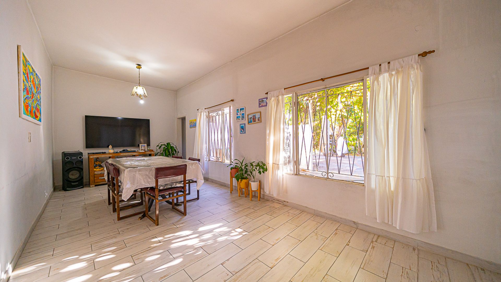 El ingreso lateral conduce directamente a una cocina totalmente renovada, con abundante iluminación natural y acceso directo al patio. El sector principal alberga tres dormitorios amplios, dos baños completos y espacios que permiten flexibilidad en su distribución.