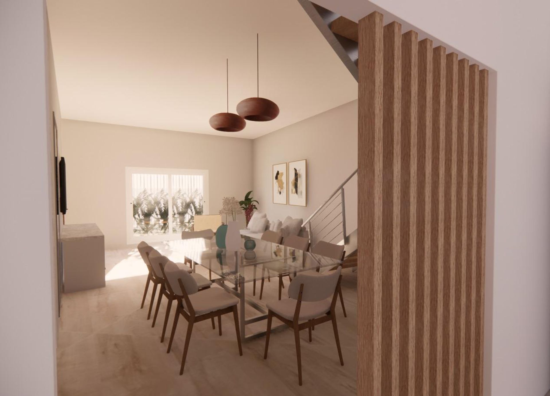 En la planta baja se encuentra un amplio y luminoso living comedor de 4,54 × 8,17 m, con ventanales de doble vidrio que permiten una excelente entrada de luz natural. La cocina completa, de 3,60 × 3,63 m, incluye espacio de guardado alto y bajo, mesada y área para lavavajillas, además de una salida hacia un amplio patio con quincho y parrilla, conectado a la lavadora. Dos dormitorios con ventanales luminosos y un baño completo completan el nivel.