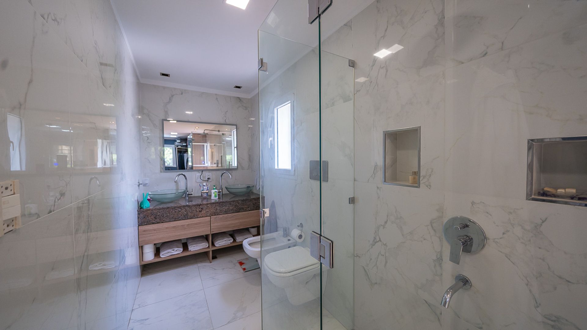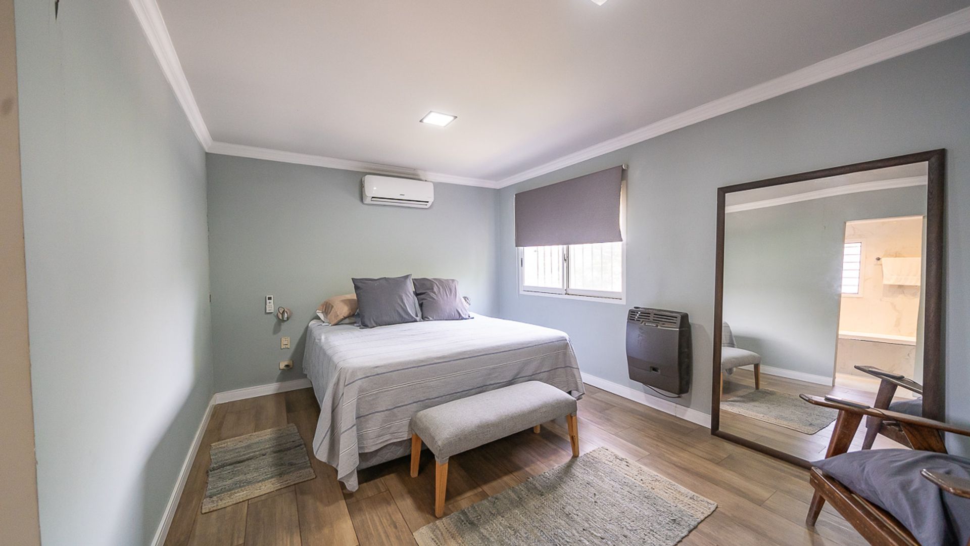 El primer piso alberga tres dormitorios luminosos; uno de ellos es una suite con hidromasaje y vestidor, mientras que un baño completo se ubica convenientemente a mitad del pasillo. Un espacio adicional, con buena iluminación, se presta para funcionar como escritorio o estudio.