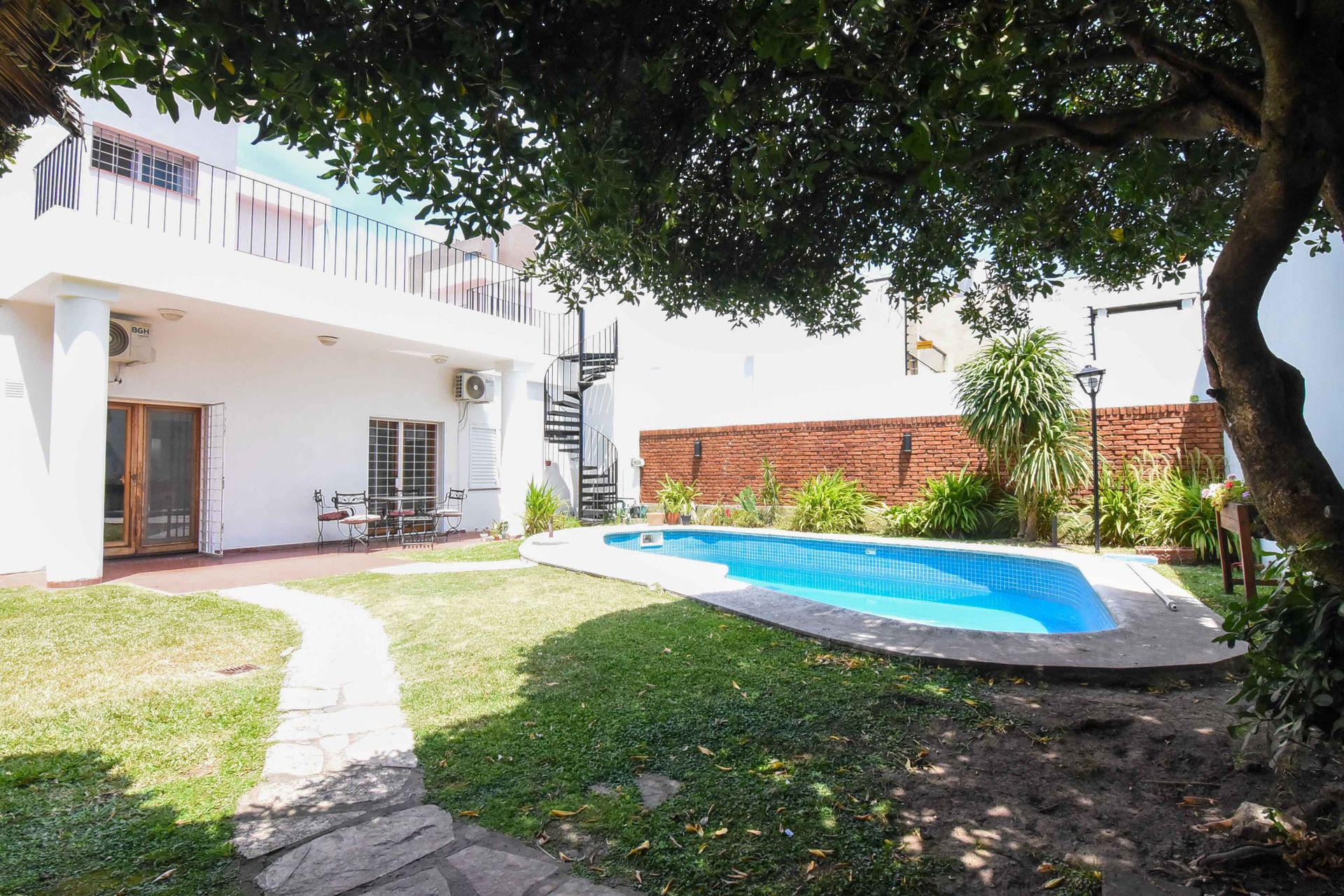 Casa de 5 ambientes, distribuida en dos plantas, ubicada en la zona residencial de Acassuso. La planta baja presenta un amplio living-comedor revestido de parquet y ventanales que ofrecen una vista y acceso directo al jardín, además de un acogedor hogar a leña. En el mismo nivel se encuentra un bar con biblioteca empotrada y una cocina-comedor de cerámica, equipada con alacenas superiores e inferiores y los principales artefactos de cocina. Un hall con doble circulación conduce a la cocina y al comedor, y la escalera abre acceso a la planta alta. También dispone de un baño completo y una habitación de servicio con baño privado. El garaje cubierto y la salida al jardín con quincho y piscina completan el conjunto, con portón que da a la calle Paunero.