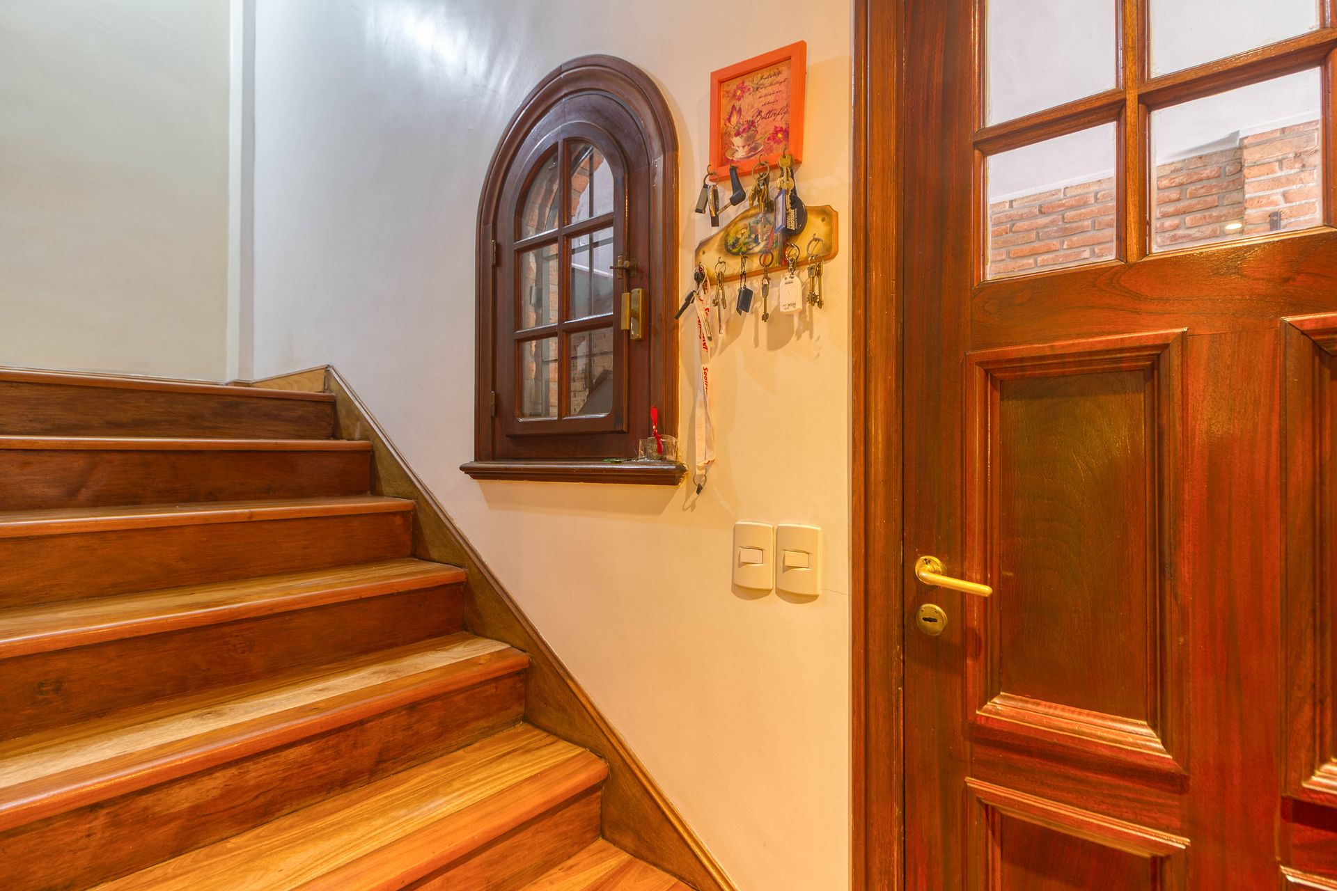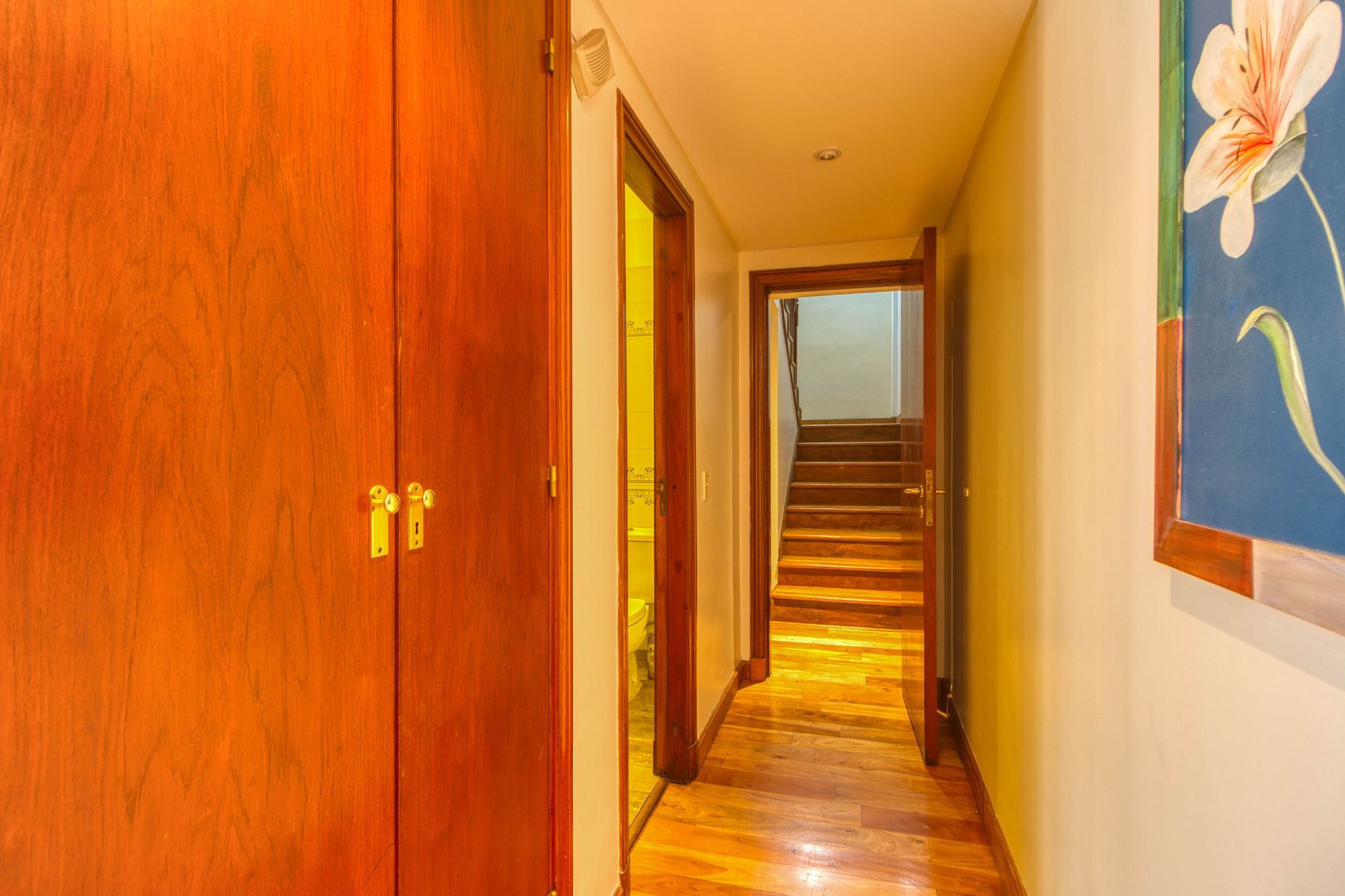 El interior cuenta con cinco espaciosas habitaciones, entre ellas una suite principal con baño completo y hogar a leña, perfecta para los días fríos. Dos dormitorios adicionales cada uno con baño privado, y un cuarto multifuncional que puede funcionar como cuarto de juegos o dormitorio adicional, con baño propio. Un espacio de servicio con baño y lavadero con salida a la terraza aporta funcionalidad adicional.