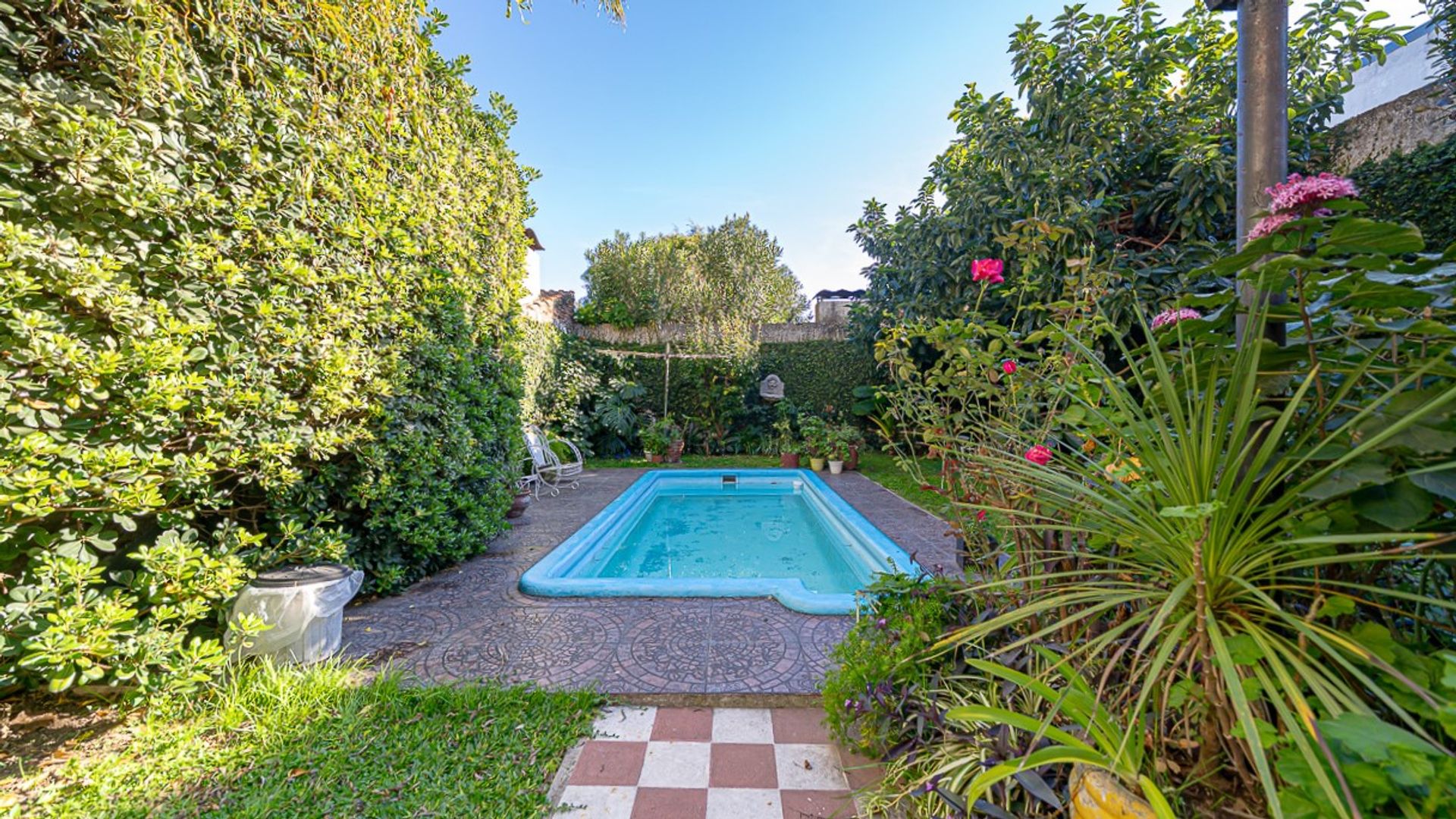 Los tres dormitorios son espaciosos y ofrecen ambientes ideales para descansar y relajarse. Dos baños completos garantizan comodidad y privacidad para todos los habitantes. El verdadero encanto de la propiedad reside en su jardín, un oasis de paz y belleza. El césped verde y bien cuidado se extiende hasta la piscina, perfecta para refrescarse en los días calurosos de verano o para disfrutar de un momento de relajación al sol. Plantas florales y árboles añaden color y vida, creando un entorno sereno y acogedor.