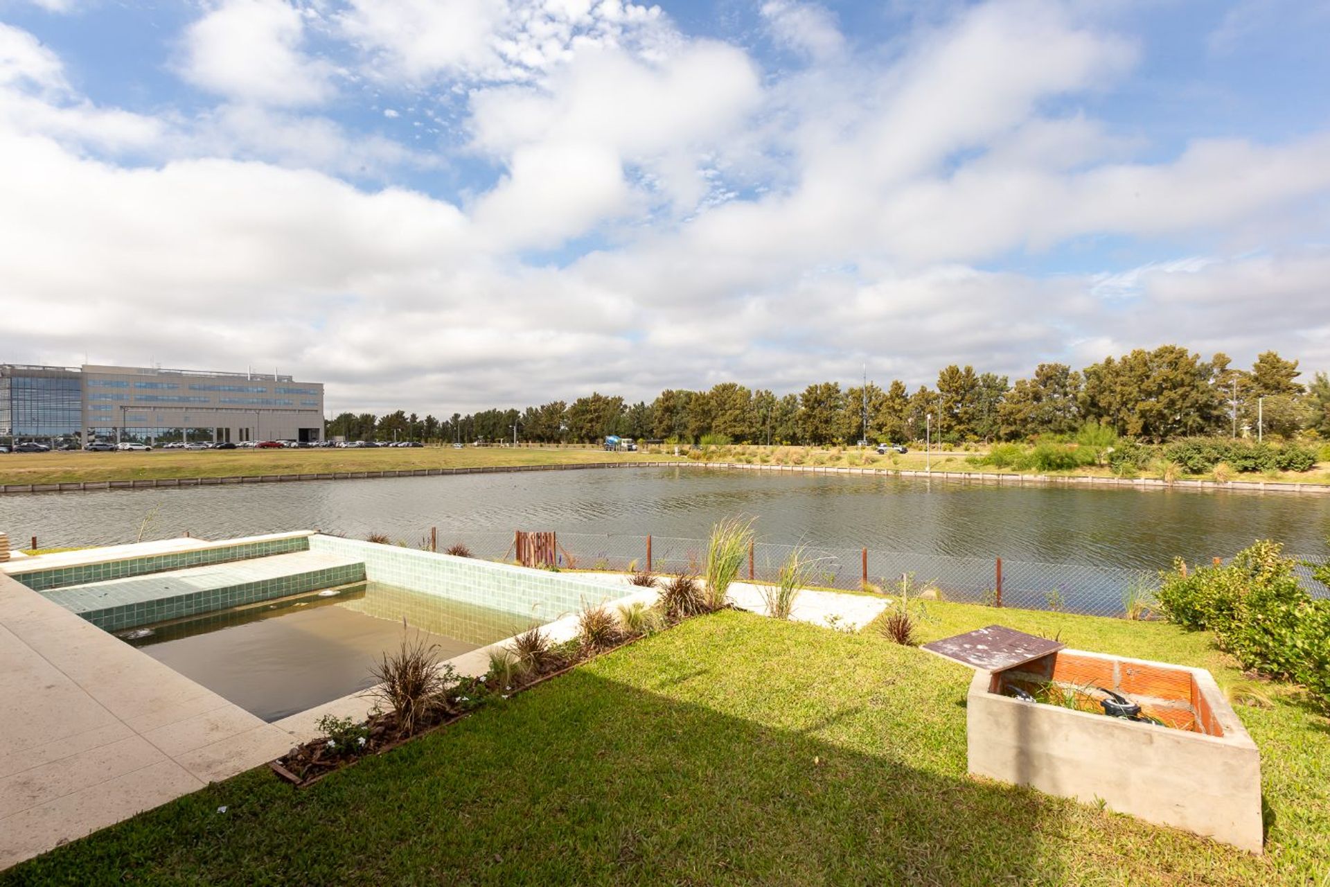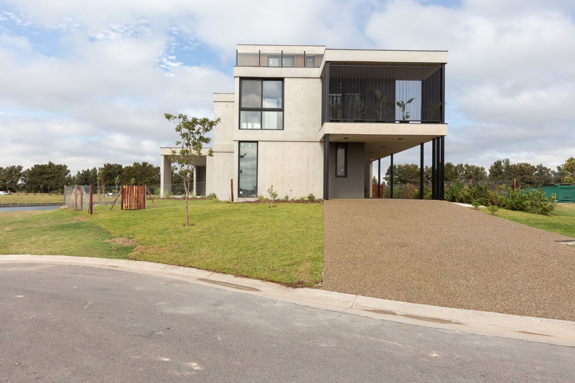 Casa de diseño en el exclusivo Barrio Los Puentes, con lote de amplias dimensiones y costa propia al lago central. La vivienda, de arquitectura contemporánea, combina líneas modernas, volúmenes definidos y materiales nobles como hormigón, vidrio y detalles en madera, logrando una estética minimalista y funcional.