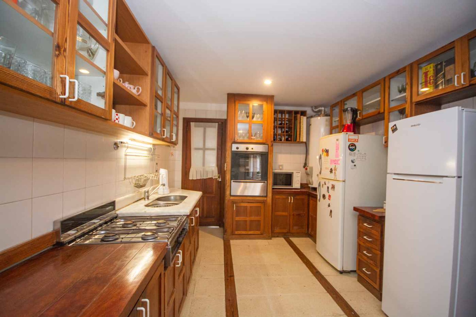 El terreno, situado en esquina con 11 metros sobre la calle Roma y 29 metros sobre la calle Rosales, abarca 295 m². La superficie construida de 185 m² se distribuye en dos plantas. La planta alta alberga un dormitorio en suite, mientras que la planta baja cuenta con tres amplios dormitorios, dos de ellos con vista al frente, un baño completo compartido y un toilette. Además, dispone de un escritorio o dependencia de servicio, un luminoso living comedor con pisos de roble, un distribuidor íntimo con vista al jardín, una cocina amplia con comedor diario y muebles de pinotea, y un lavadero independiente conectado a la cocina.