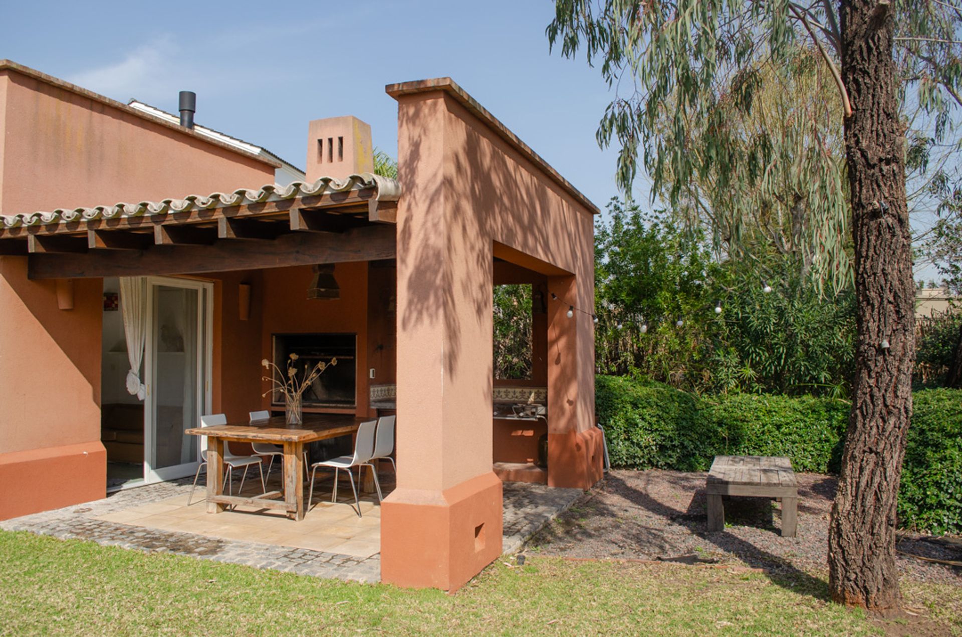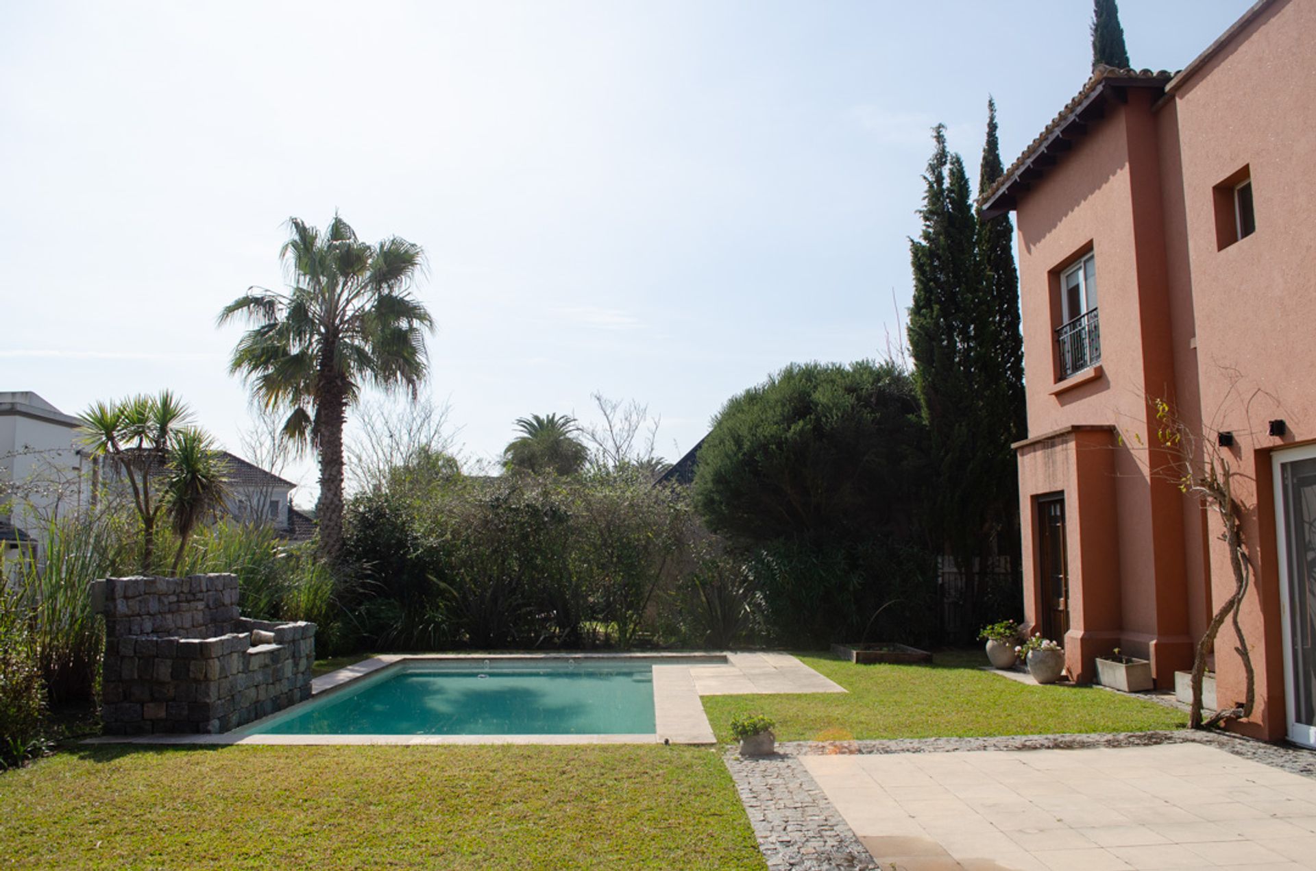 El jardín cuenta con una galería equipada con anafe incorporado, ideal para asados y celebraciones al aire libre. Una parrilla con fogonero permite disfrutar de parrilladas con amigos y familiares. La pileta de 9 × 4 m, con cascada, ofrece un espacio de relajación durante los días soleados. El sistema de riego automático mantiene el verde impecable, y el filtro automático de la pileta garantiza agua limpia y cristalina.