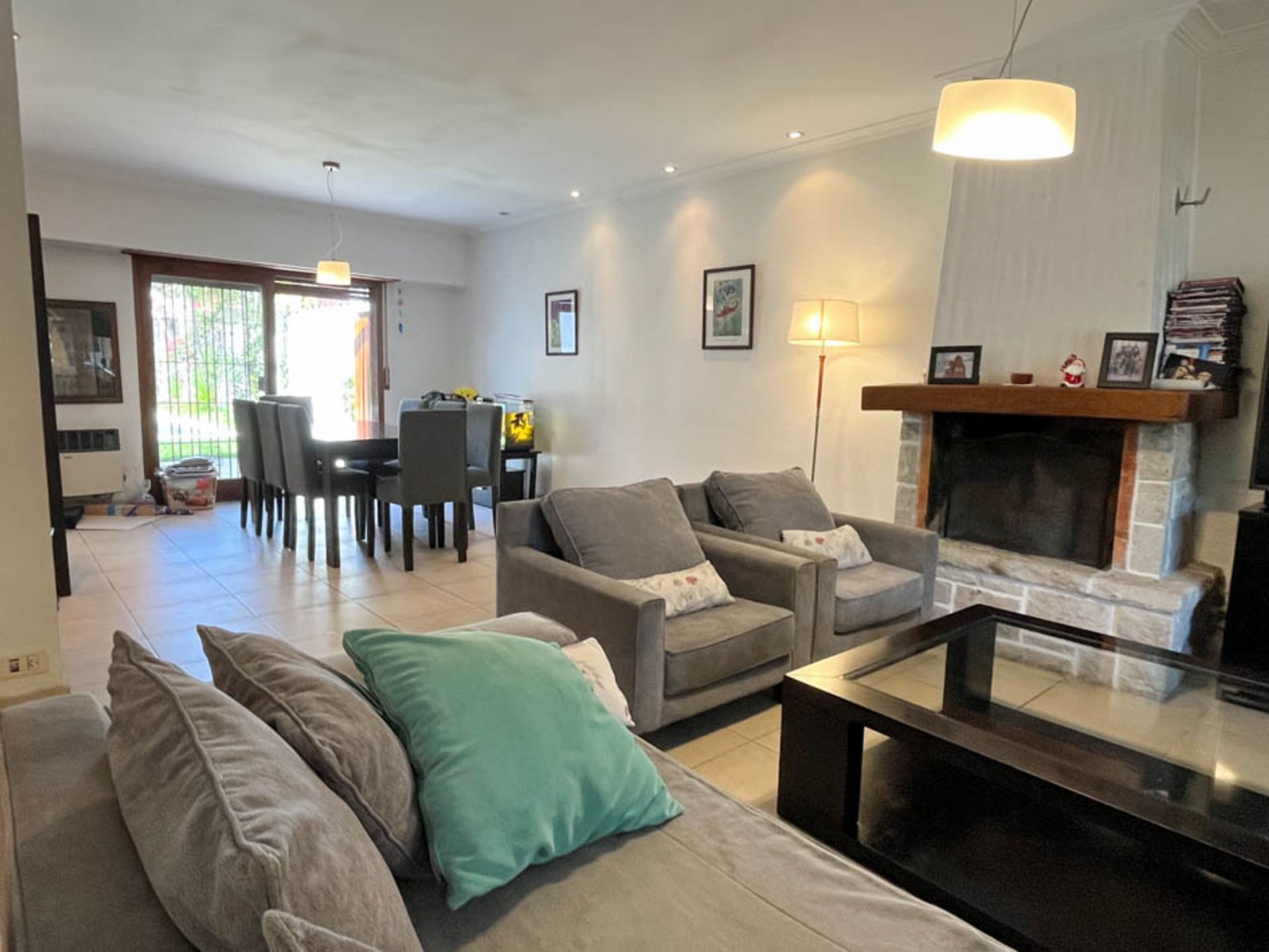 En la planta baja se encuentran un luminoso living y comedor que se integran con una cocina de gran capacidad, equipada con isla y amplio espacio de almacenamiento. La galería exterior y el jardín permiten disfrutar de la luz natural y la tranquilidad del entorno. La pileta y el quincho cubierto, con parrilla, baño, aire acondicionado y amplio espacio de guardado, son ideales para reuniones familiares y sociales. Un toilette y una cochera cubierta completan esta planta.