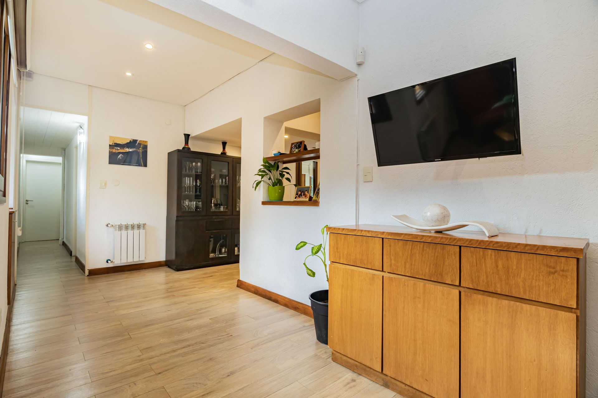 El confort térmico se mantiene gracias a la calefacción central por caldera y radiadores en cada ambiente, complementada con aire acondicionado en toda la casa, incluyendo cocina y living. La vivienda cuenta con dos cocheras cubiertas con portón eléctrico, ofreciendo seguridad y comodidad al estacionar.