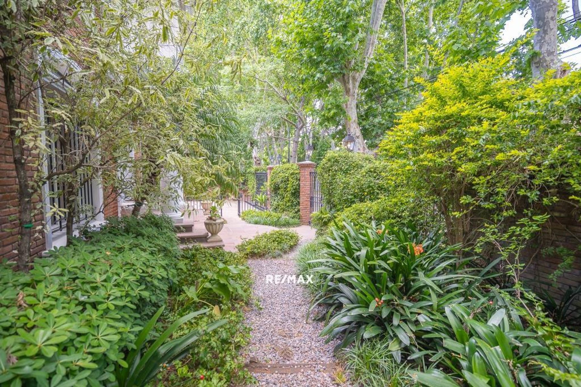 En la planta baja, la recepción conduce a un amplio living con ventanales frontales y laterales, una chimenea de leña y acceso a una galería que ofrece vistas al jardín. El comedor principal, con ventanales que invitan al espacio exterior, se conecta con otra galería y con una cocina de diseño funcional que incluye una amplia ventana al jardín, acceso a la galería, mobiliario bajo mesada y alzada, horno eléctrico, anafe de cinco hornallas (una eléctrica y cuatro a gas), campana de acero y un cuartalacena. Un lavadero y cuarto de planchado, junto con un área para mascotas, se integran de forma práctica con el garaje, que ofrece espacio para dos vehículos y un cuarto de herramientas o depósito.