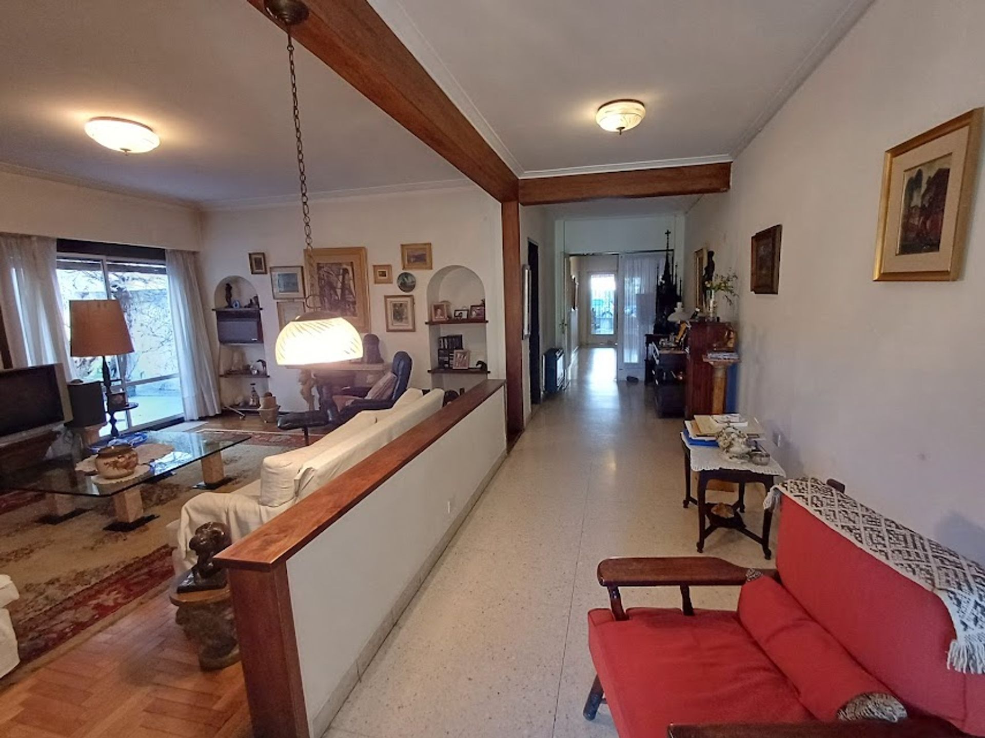La vivienda original consistía en dos departamentos con sus propios patios. En la actualidad, la estructura permite la construcción de dos pisos adicionales y la creación de dos viviendas distintas, si así se desea. El interior se caracteriza por su luminosidad, gracias a los numerosos ventanales que inundan cada ambiente de luz natural.