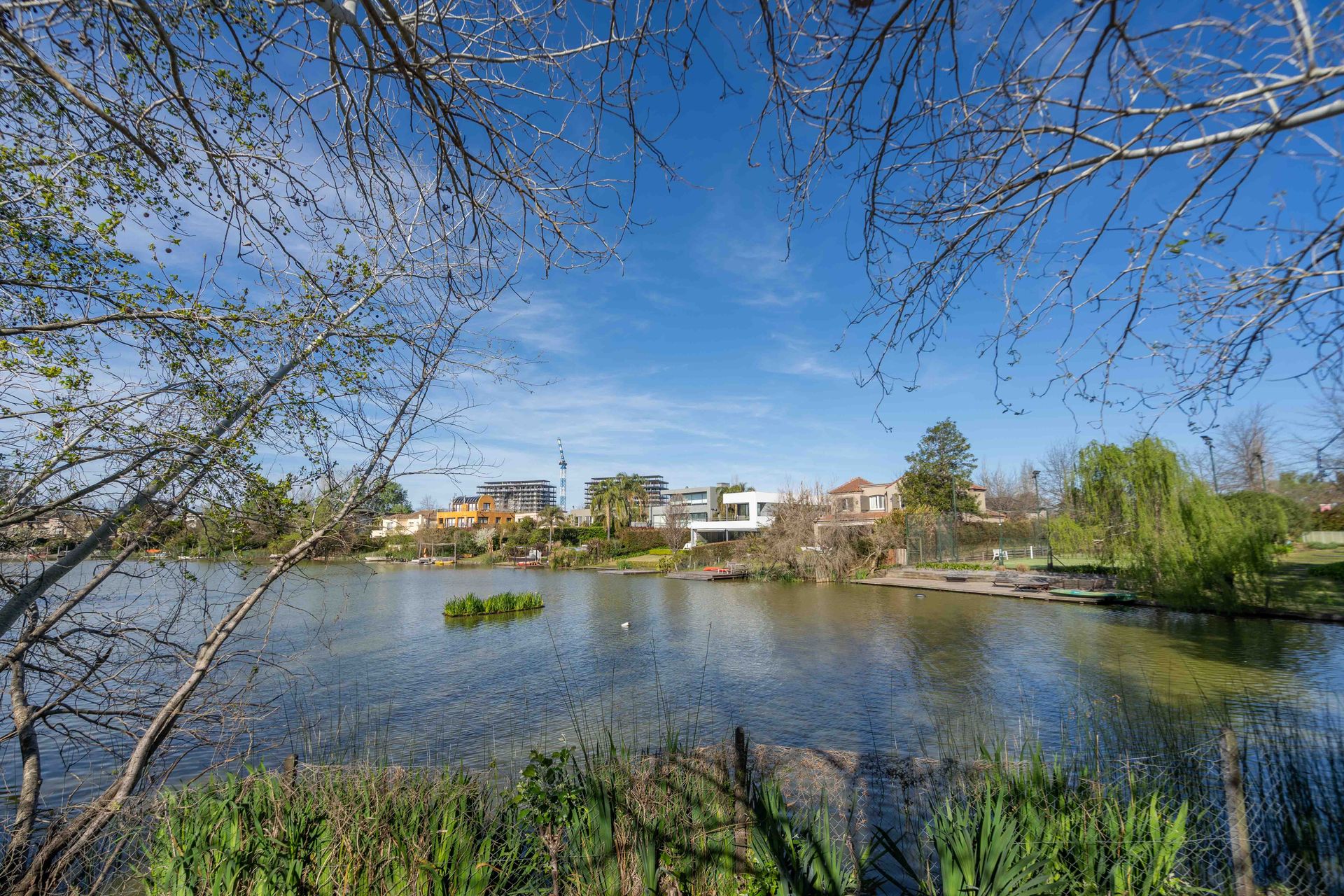 La planta alta alberga un amplio living y una cocina que se abren hacia las vistas al agua, ofreciendo abundante luz natural y una conexión directa con la laguna. En la planta baja, las habitaciones se integran armoniosamente con el jardín, creando un espacio íntimo y sereno.