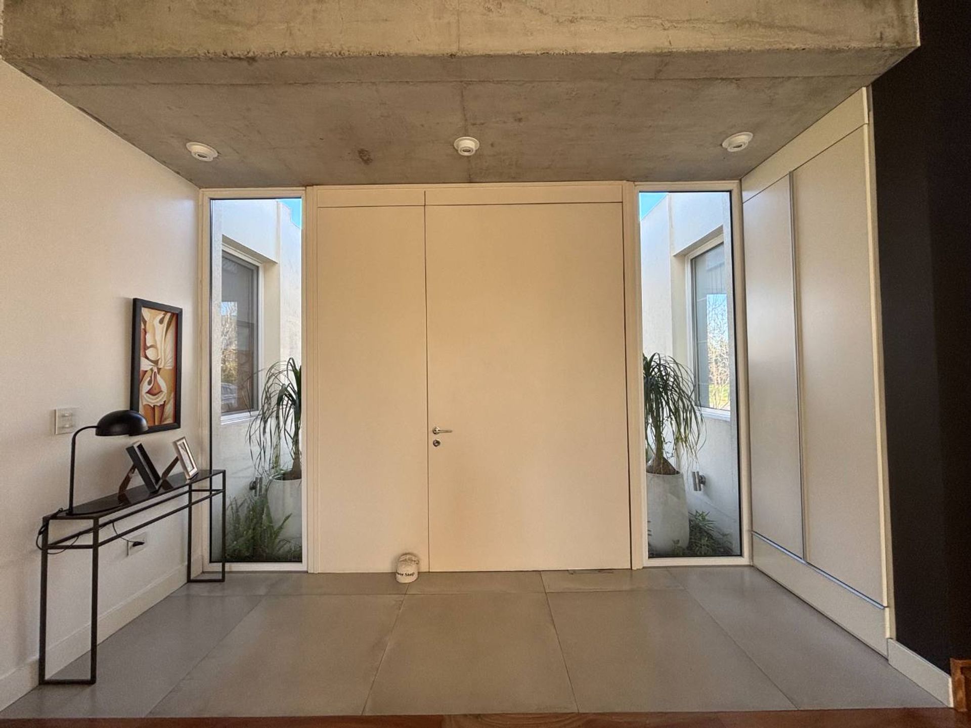 En la planta baja se encuentra un hall de recepción que abre a un amplio living, una cocina americana integrada y un comedor de diseño contemporáneo. El lavadero cuenta con baño completo. El dormitorio principal dispone de suite con vestidor y un escritorio, mientras que un ambiente multifuncional ofrece baño completo y entrada independiente, garantizando privacidad y comodidad para los visitantes.