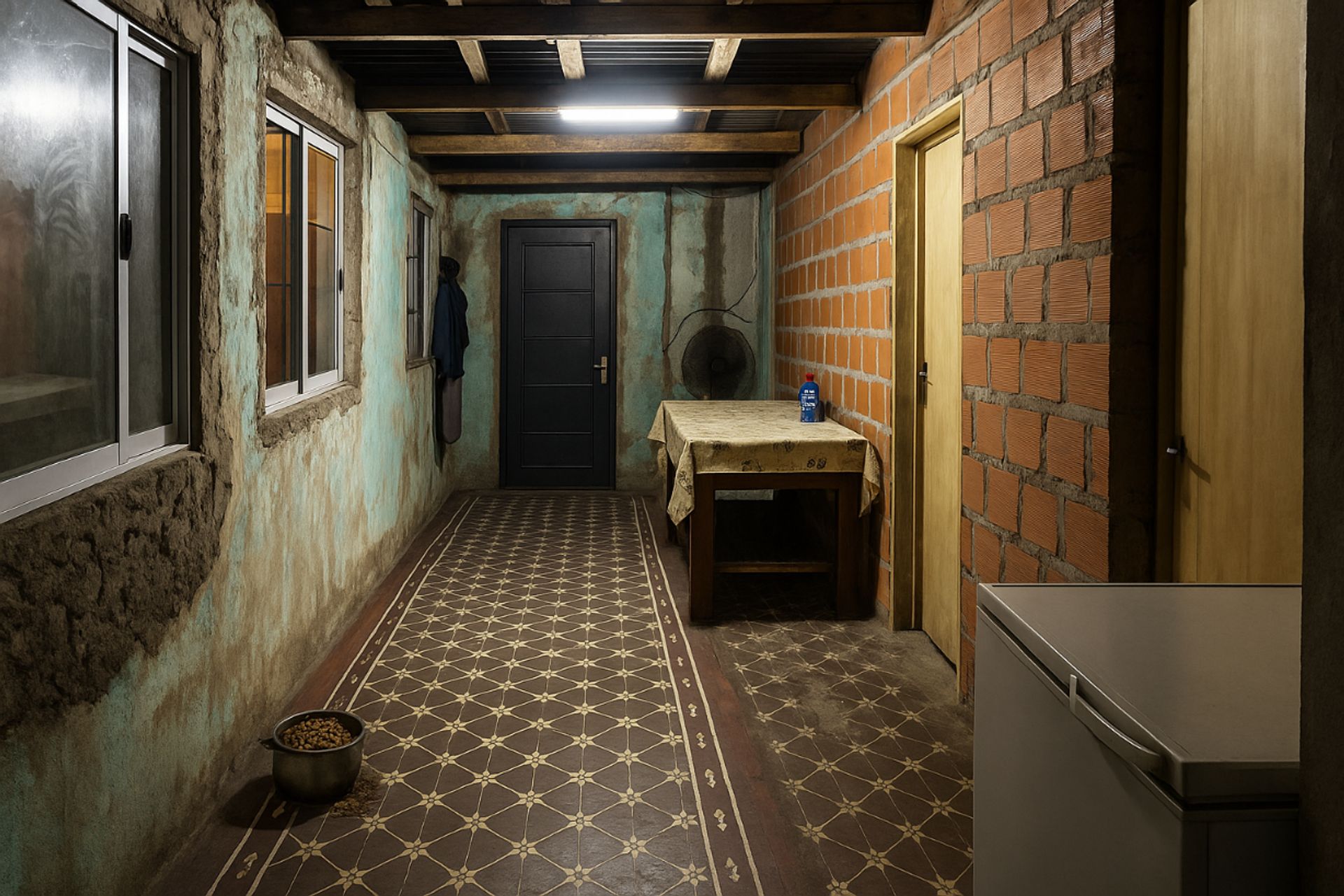 El interior cuenta con una cocina con mesada y alacena, ideal para cocinar con comodidad, y un cuarto de guardado para mantener el orden. Dos dormitorios sin placard, uno de ellos con baño privado, brindan amplitud y funcionalidad. Un pasillo con ventanal lateral aporta luz natural y ventilación, creando un ambiente acogedor.