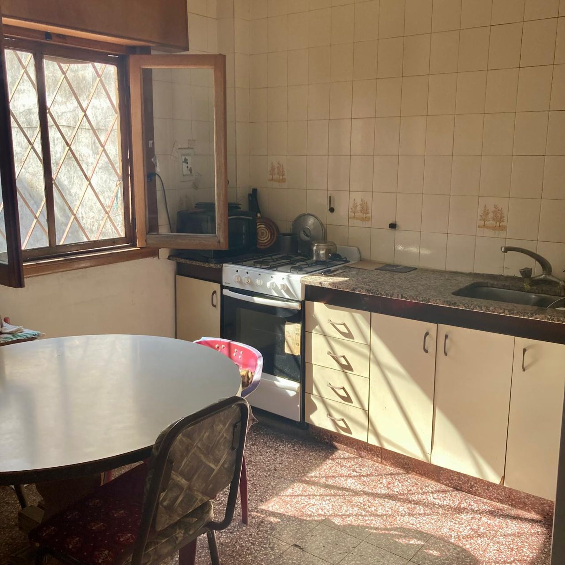 La distribución incluye una galería, una cocina con comedor diario, dos dormitorios amplios, un baño completo con ducha y un lavadero. En la planta alta se encuentra una habitación de huésped y una terraza.