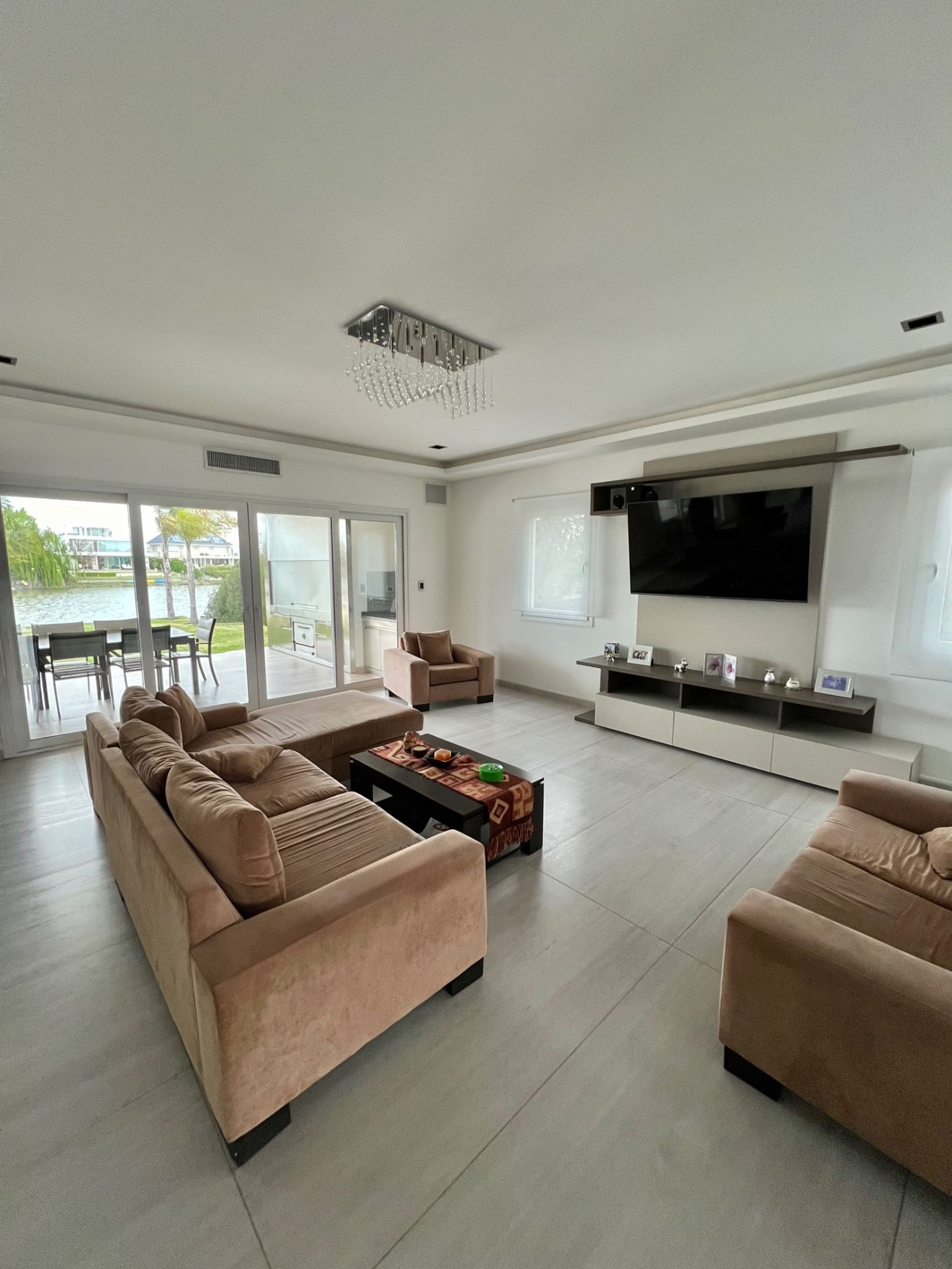 Ubicada en un terreno de 950 m² con un amplio espejo de agua, esta casa de 600 m² (550 m² cubiertos + 50 m² semicubiertos) destaca por sus ambientes generosos, excelente luminosidad y una vista abierta al Lago Central.