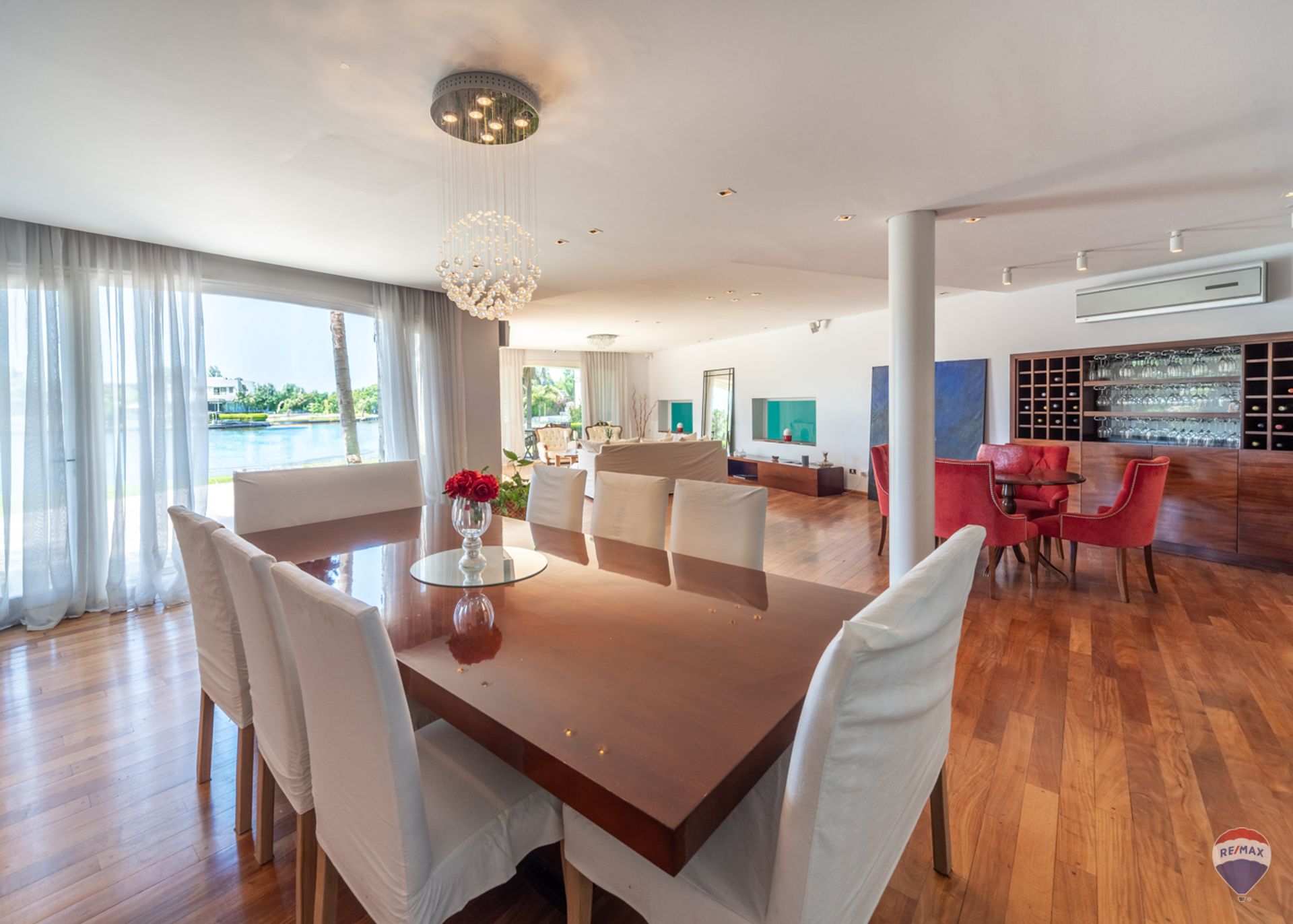 La residencia cuenta con los siguientes acabados y confort: losa radiante sectorizada, aire acondicionado tipo split en todos los ambientes y pisos de madera en living y planta alta. Esta propiedad de personalidad marcada combina arquitectura, bienestar, recepción de invitados y ubicación para ofrecer una experiencia residencial distinta, con vistas abiertas al Lago Central y el sello de uno de los estudios más reconocidos del país.