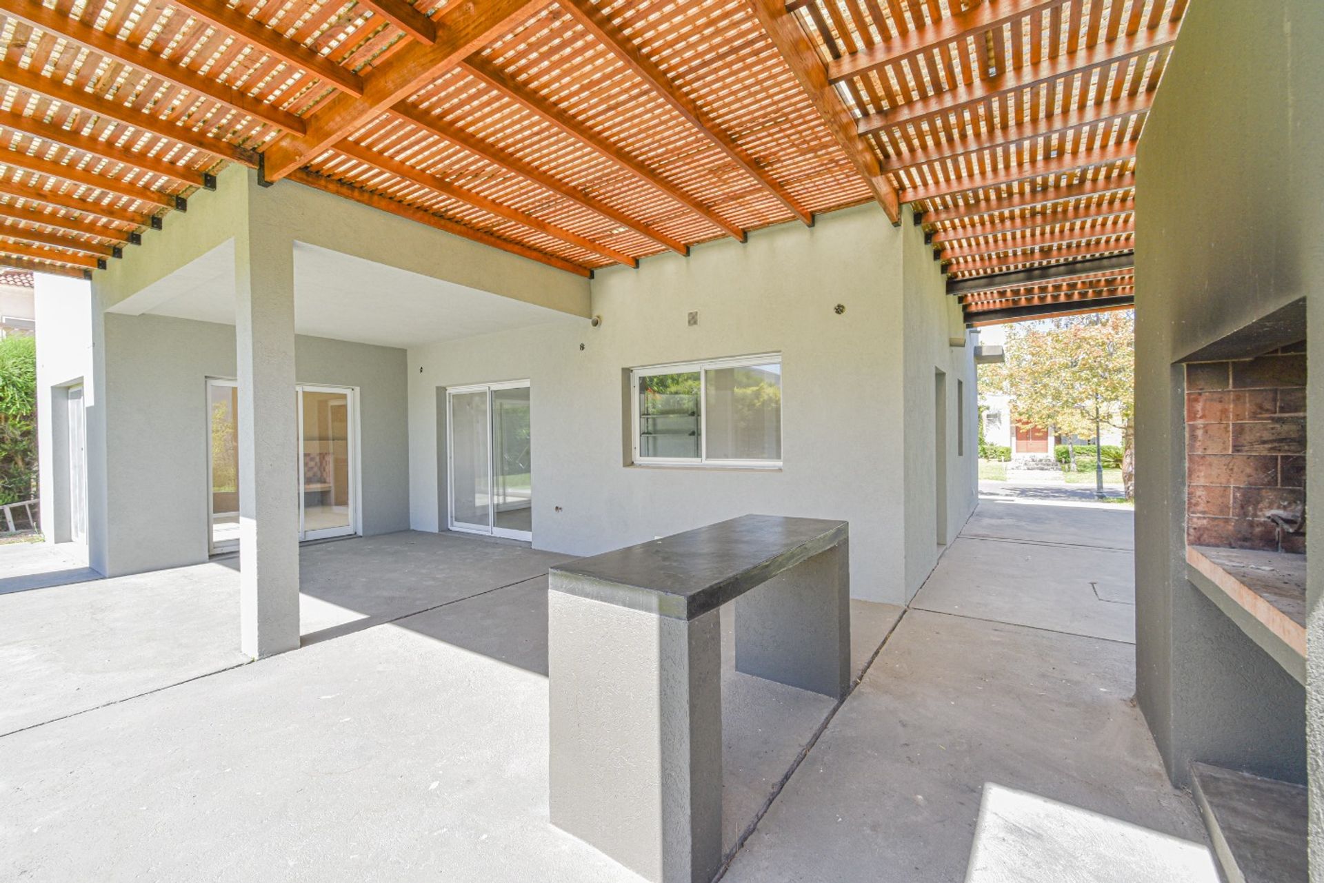 En la planta baja se despliega un amplio living comedor con hogar a leña y acceso directo al jardín. El dormitorio o área de trabajo, la cocina con desayunador y comedor diario, y el baño de recepción se integran armoniosamente. La cocina cuenta con muebles de melamina blanca, herrajes de aluminio, y una mesada de mármol negro brasileño, complementados por un práctico espacio de lavadero. Una dependencia de servicio con baño, una galería con parrilla y barra, y una pileta de lavar, añaden funcionalidad al entorno. El jardín, de gran extensión, está equipado con sistema de riego por aspersión automático, y un guardacoches techado en lateral de la casa brinda comodidad adicional.