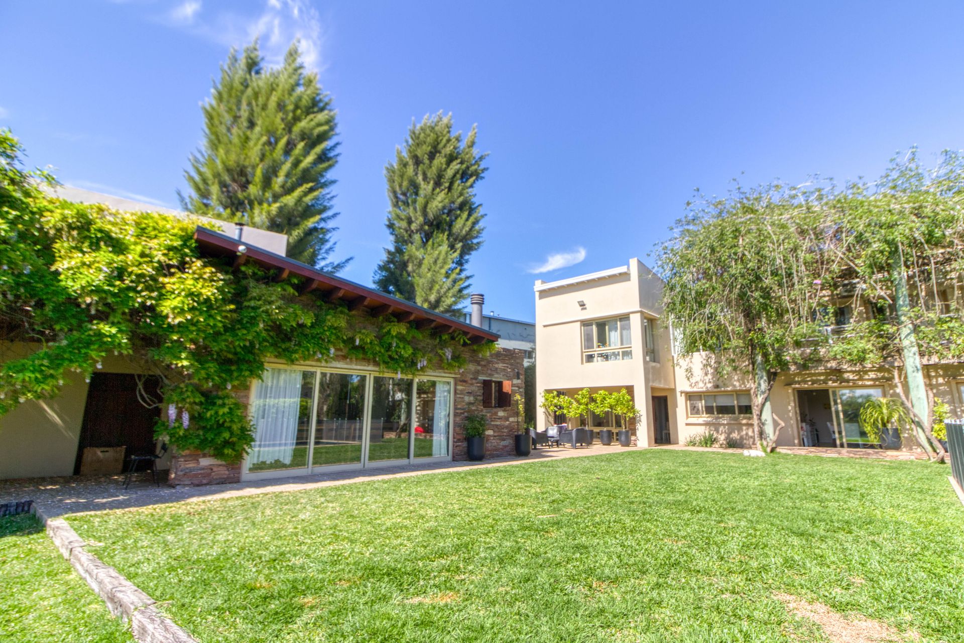 Exterior: Jardín con riego automático; muelle con amarra propia y 36 metros de costa sobre la laguna; quincho con parrilla, cocina, baño completo y una habitación extra para huéspedes; pileta climatizada sin fin con vistas al espejo de agua; generador eléctrico para garantizar autonomía; espacio cubierto para 2 autos bajo pérgola y estacionamiento adicional para 10 vehículos.