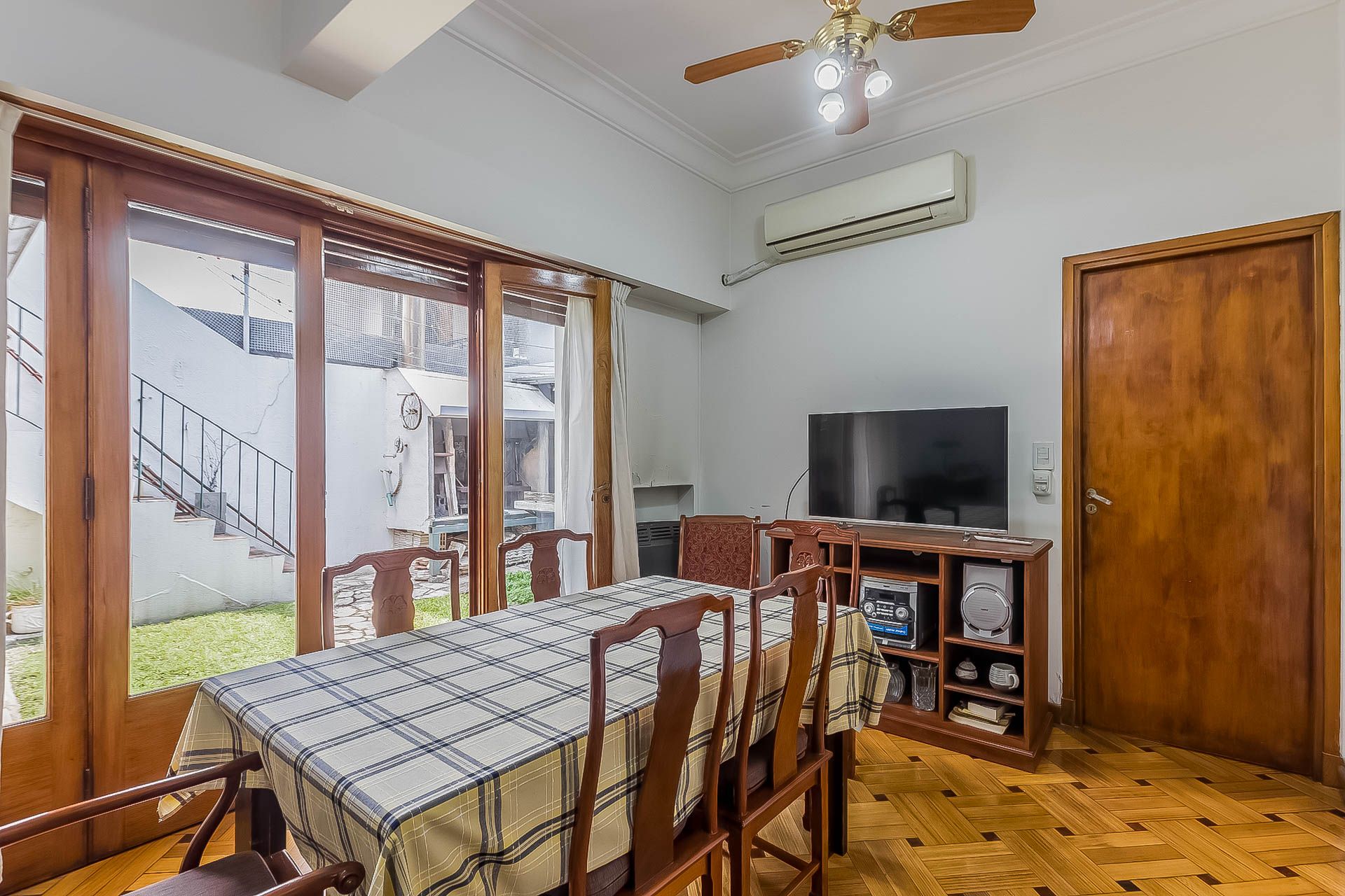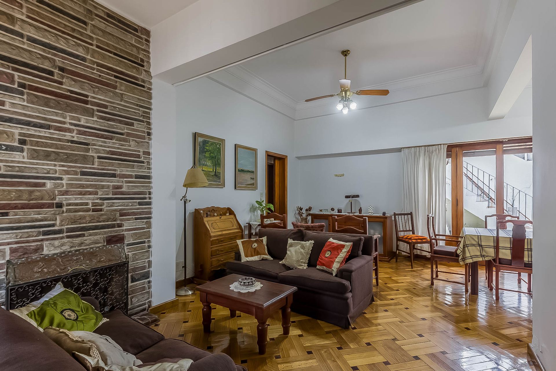 El garaje, aunque ha sido modificado, puede recuperarse mediante una obra menor, permitiendo la reinstauración de su funcionalidad original. En el primer nivel se encuentra un departamento de dos ambientes con potencial para múltiples usos, accesible desde el patio o mediante una entrada independiente en la fachada, lo que añade versatilidad y posibilidades de expansión o alquiler.