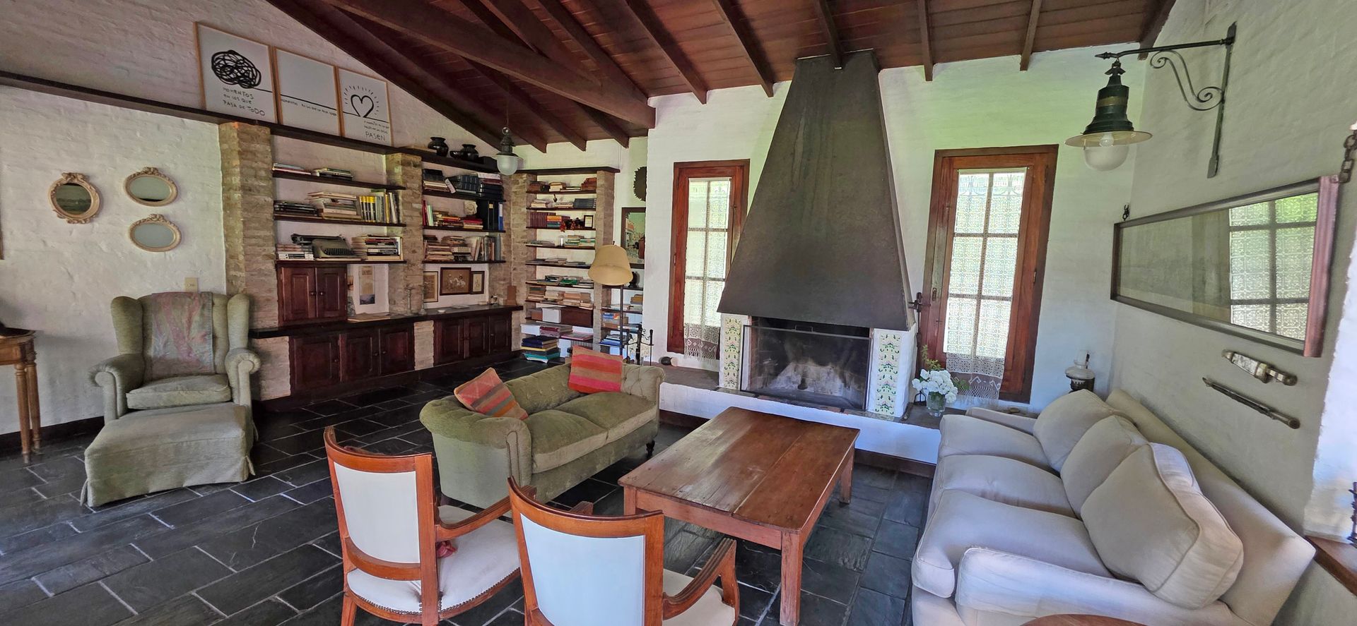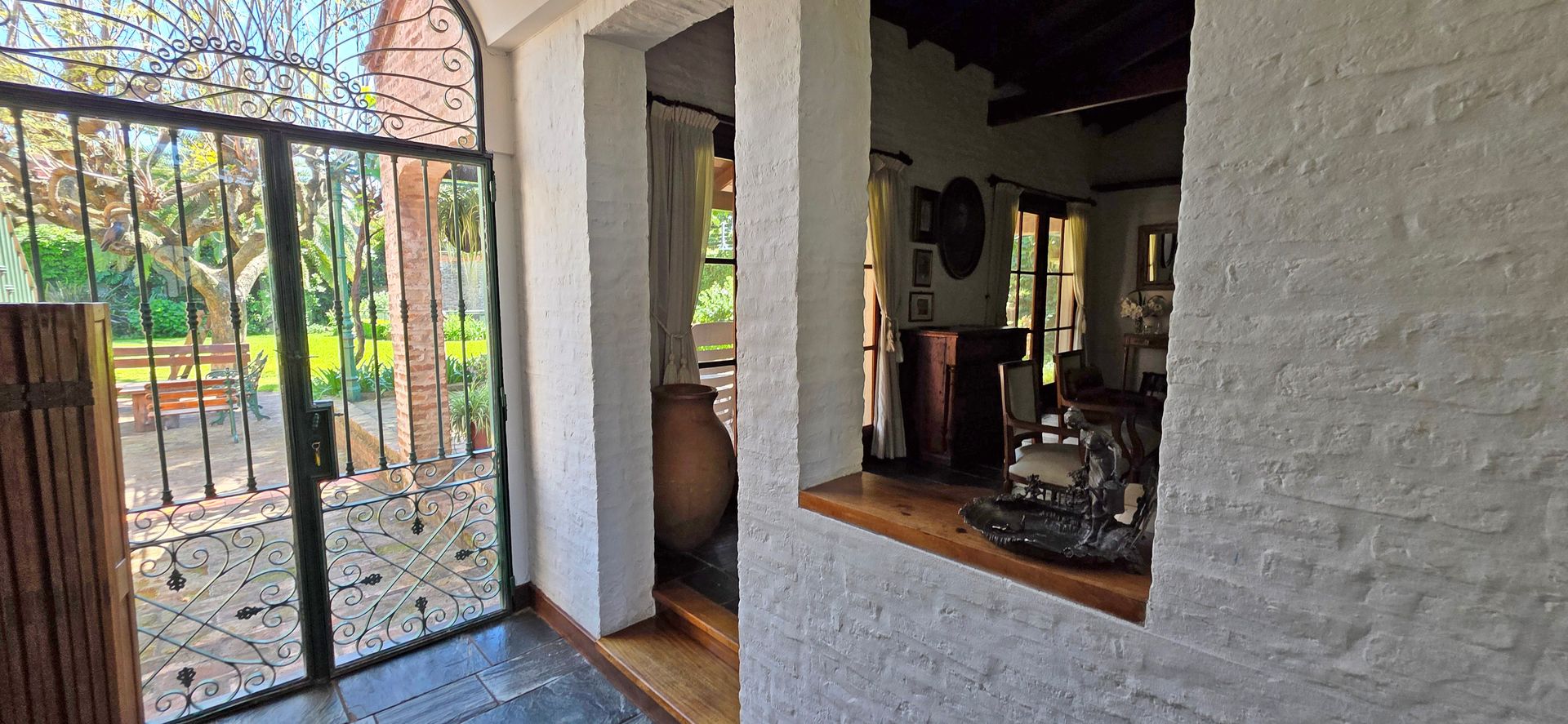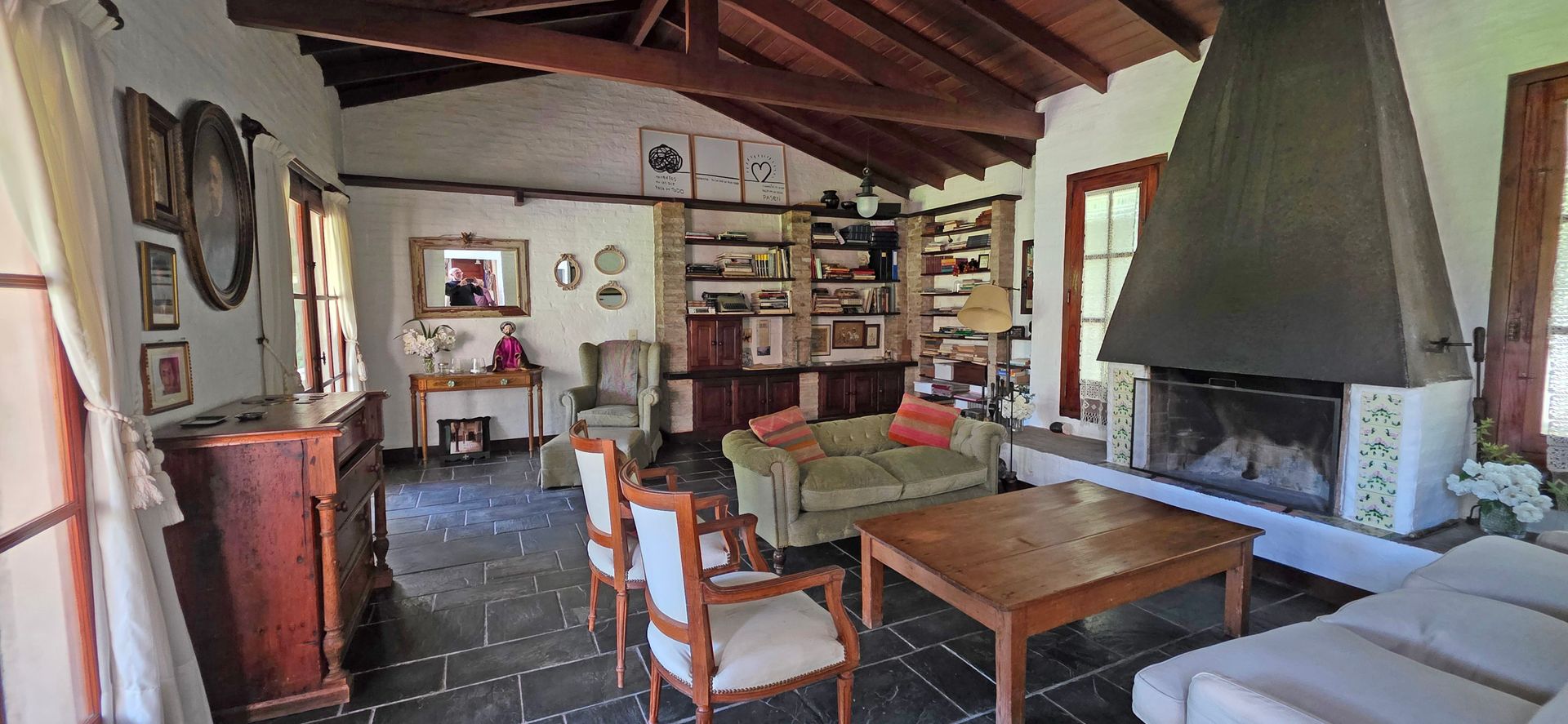El área de living y comedor es amplia, con hogar a leña, biblioteca y salida a la galería del jardín, creando un ambiente acogedor y luminoso. La zona de servicios incluye comedor diario, cocina completa, lavadero y dependencia de servicio con baño, además de acceso independiente al exterior, a la parrilla y al horno de barro. En la zona familiar se encuentra un amplio playroom con salida al jardín, toilette y acceso a tres habitaciones en planta baja que comparten un baño compartimentado. Un ascensor conduce a la suite con vestidor, baño completo y salida a una terraza privada, que a su vez permite acceso a una torre.