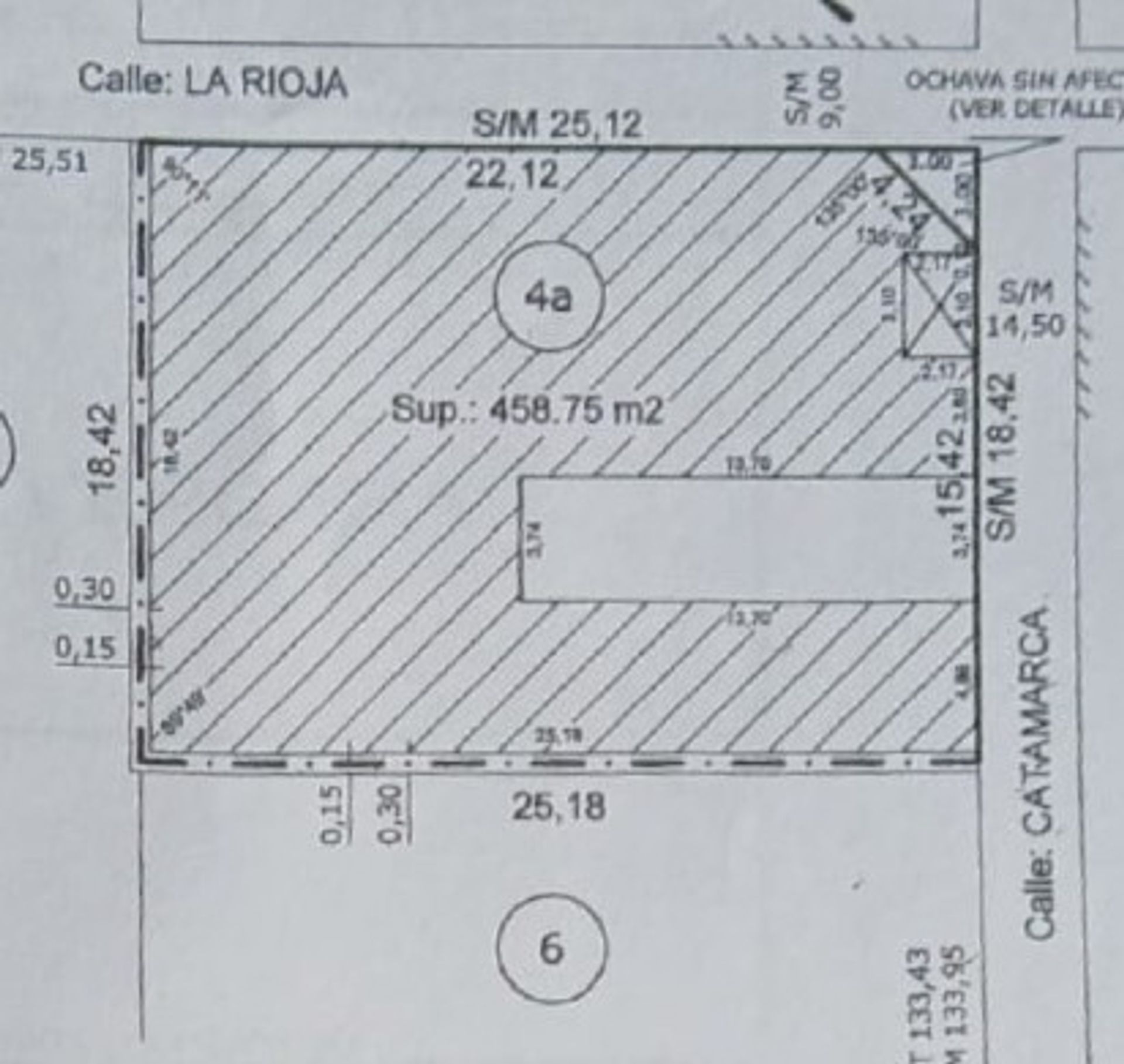 Propiedad en esquina sobre un lote de 458,75 m², con frente a Calle Catamarca esquina Ríoja. El terreno ofrece excelente visibilidad y potencial de desarrollo.