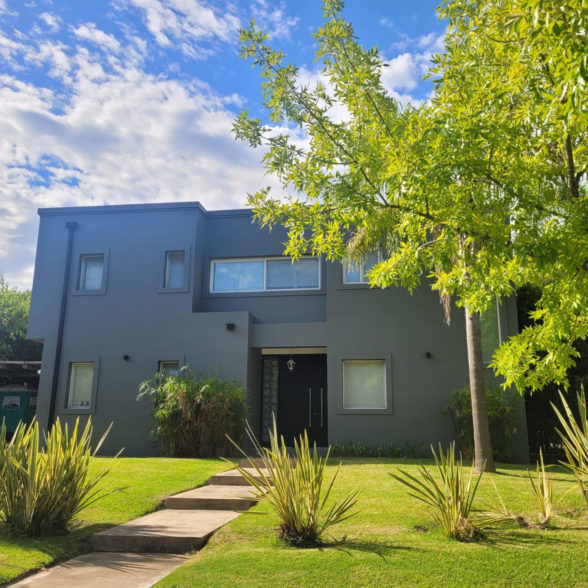 En la planta baja se encuentra un hall de acceso y recepción que conduce a un amplio living comedor. Los grandes ventanales y balcones ofrecen vistas a la galería y al jardín, creando una atmósfera luminosa y aireada. La cocina comedor diario, con salida directa a la galería y al jardín, está equipada con electrodomésticos modernos y un lavadero. Además, la planta baja incluye una habitación y un baño de servicio, una galería con parrilla perfecta para reuniones al aire libre y un espacio de cochera.