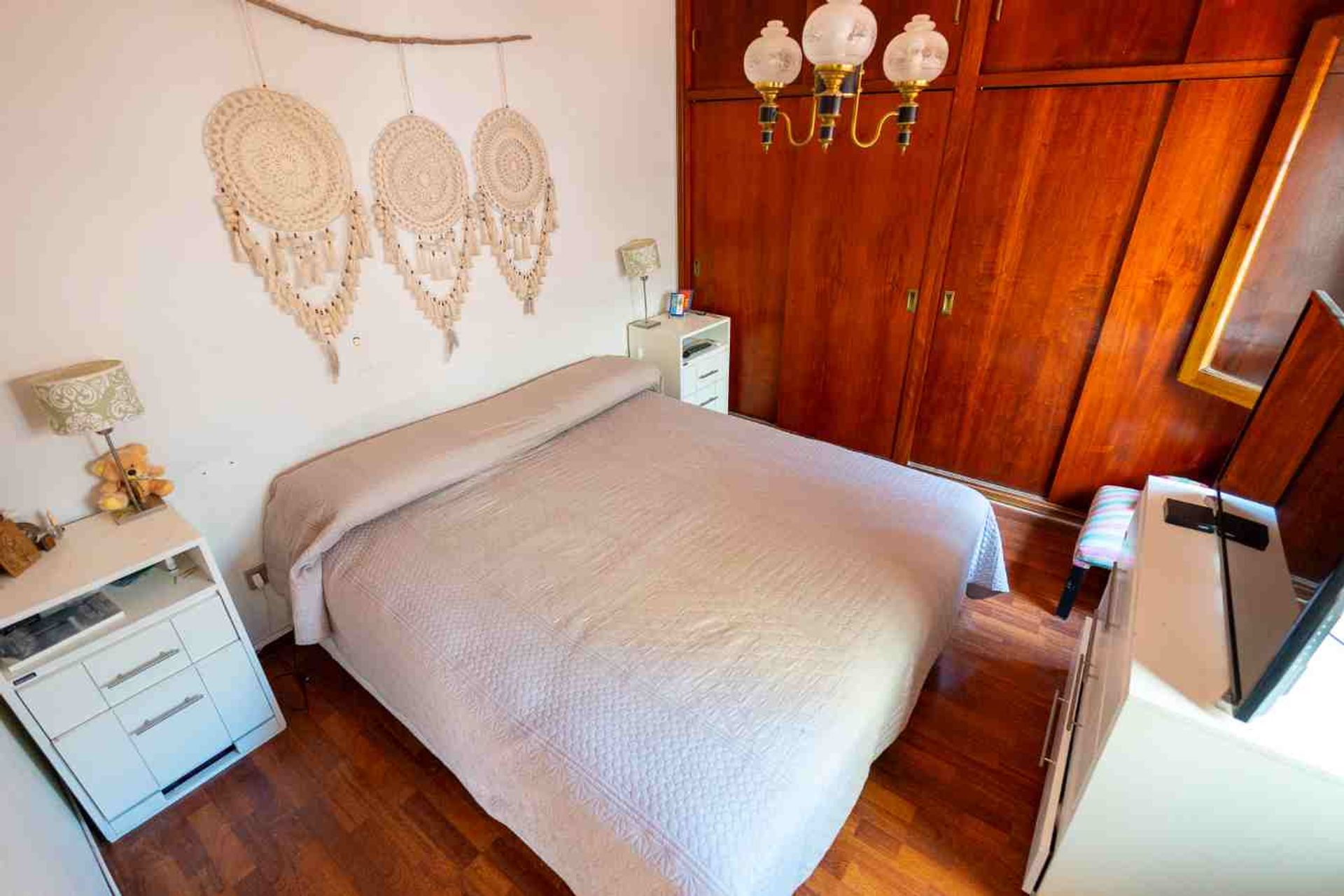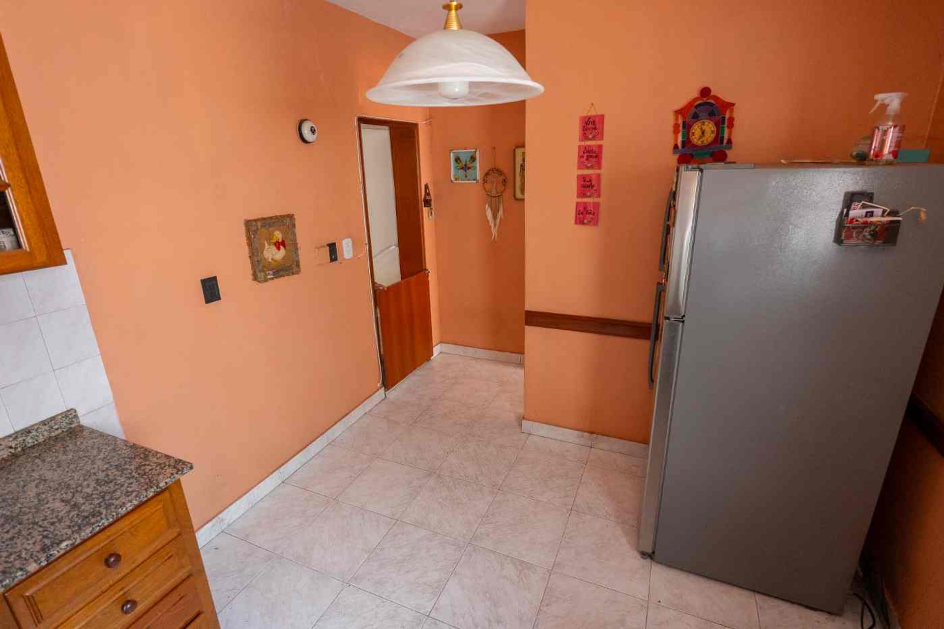 La entrada de la planta baja conduce a un amplio living comedor con espacio para sillones y mesa grande, conectado al garaje con portón a la calle. La cocina a gas, con gran mesada en L, es luminosa y funcional. Los dormitorios incluyen una primera con ventilación al garaje y un dormitorio principal con vista al patio, completo con baño. El patio, con abundante luz natural, cuenta con parrilla y horno de barro, lavadero cerrado y, al fondo, el quincho con cocina propia, baño completo y baulera.