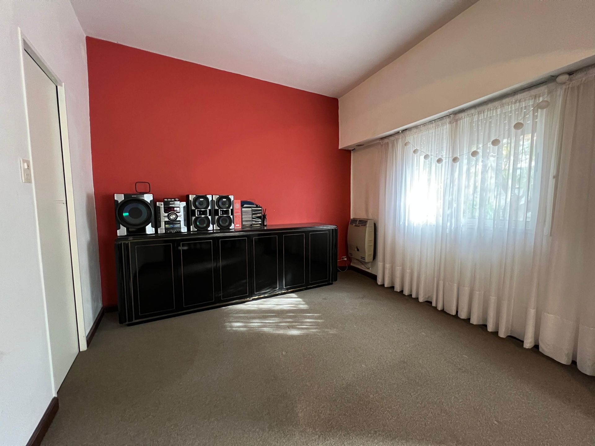 La segunda vivienda, de tres ambientes, ofrece un amplio hall de entrada que puede funcionar como living o dormitorio, seguido de comedor, cocina con salida al patio, baño completo y una habitación con vestidor. El patio cuenta con parrilla, cuarto de herramientas y una cochera descubierta apta para un auto o camioneta.