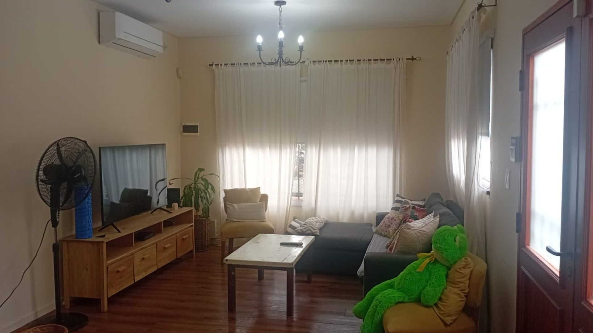 La casa cuenta con tres dormitorios. La suite principal, de gran tamaño, incluye baño completo privado, escritorio integrado y placard de piso a techo. Los dos dormitorios restantes disponen de placards nuevos; uno de ellos incluye entreplaza de guardado. Todos los dormitorios tienen ventanas orientadas al exterior, lo que permite una luminosidad total y vistas despejadas que realzan la amplitud de cada ambiente. Además, la casa dispone de tres baños completos: uno en la suite, otro para el resto de la casa y un tercero en el sector del quincho/galería.