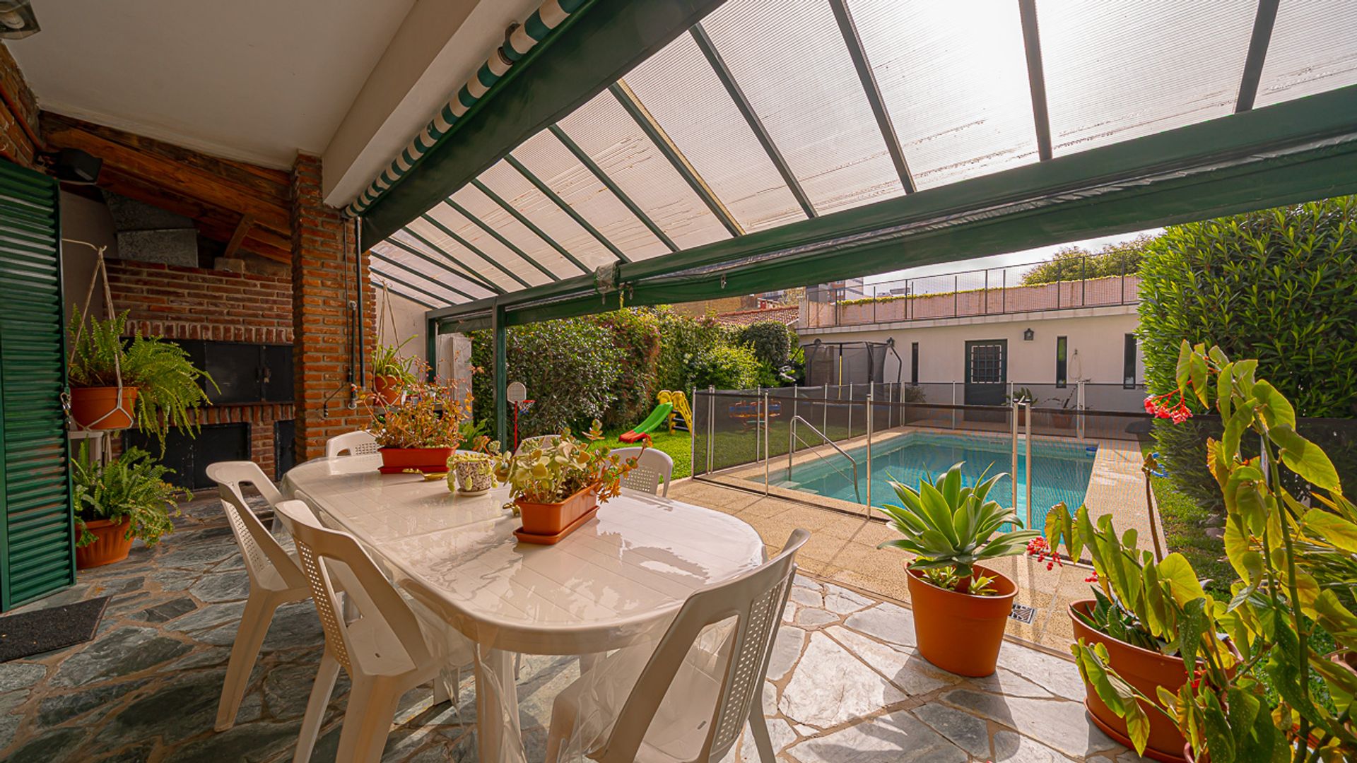 Entre sus amenidades destacan aire acondicionado en todos los ambientes, una pileta, una galería semicubierta con parrilla, caldera y calefacción. En cuanto a servicios, la propiedad cuenta con agua, electricidad, gas, internet, teléfono, desagüe cloacal, televisión por cable, alarma y televisión satelital, lo que garantiza comodidad y conectividad para sus futuros propietarios.