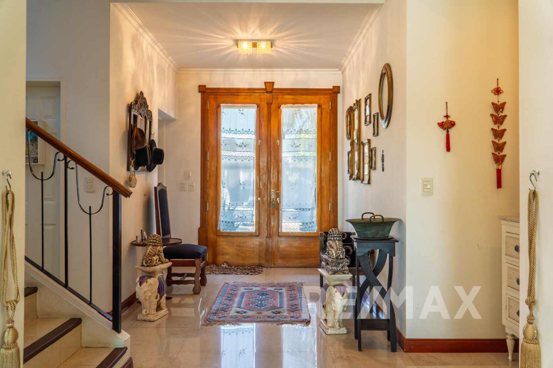 En la planta baja se encuentran un amplio living-comedor con ventanales que ofrecen vistas al jardín y a la laguna, una cocina comedor con distribución industrial, un toilette de recepción, una habitación de servicio con baño completo y una ducha, además de un lavadero independiente. La amplitud y la iluminación natural crean un ambiente acogedor y funcional.