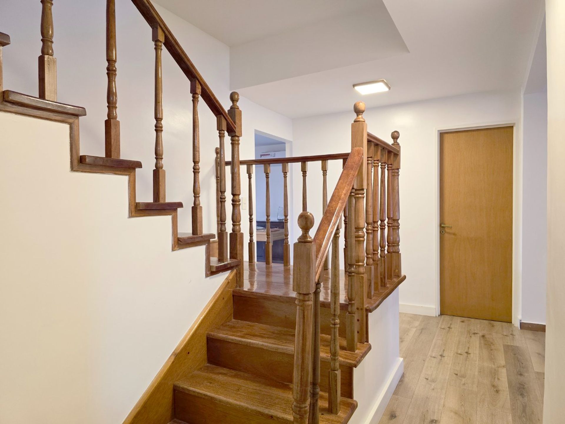La planta alta alberga cuatro dormitorios, todos con placard empotrado; uno de ellos en suite con vestidor. Dos baños completos con acabados modernos y pisos de madera viraró, junto con una escalera de madera de anchico, proporcionan un ambiente cálido y acogedor. Una terraza de 6,80 x 3,30 m con acceso al jardín ofrece un espacio ideal para disfrutar de la naturaleza y el clima mediterráneo.