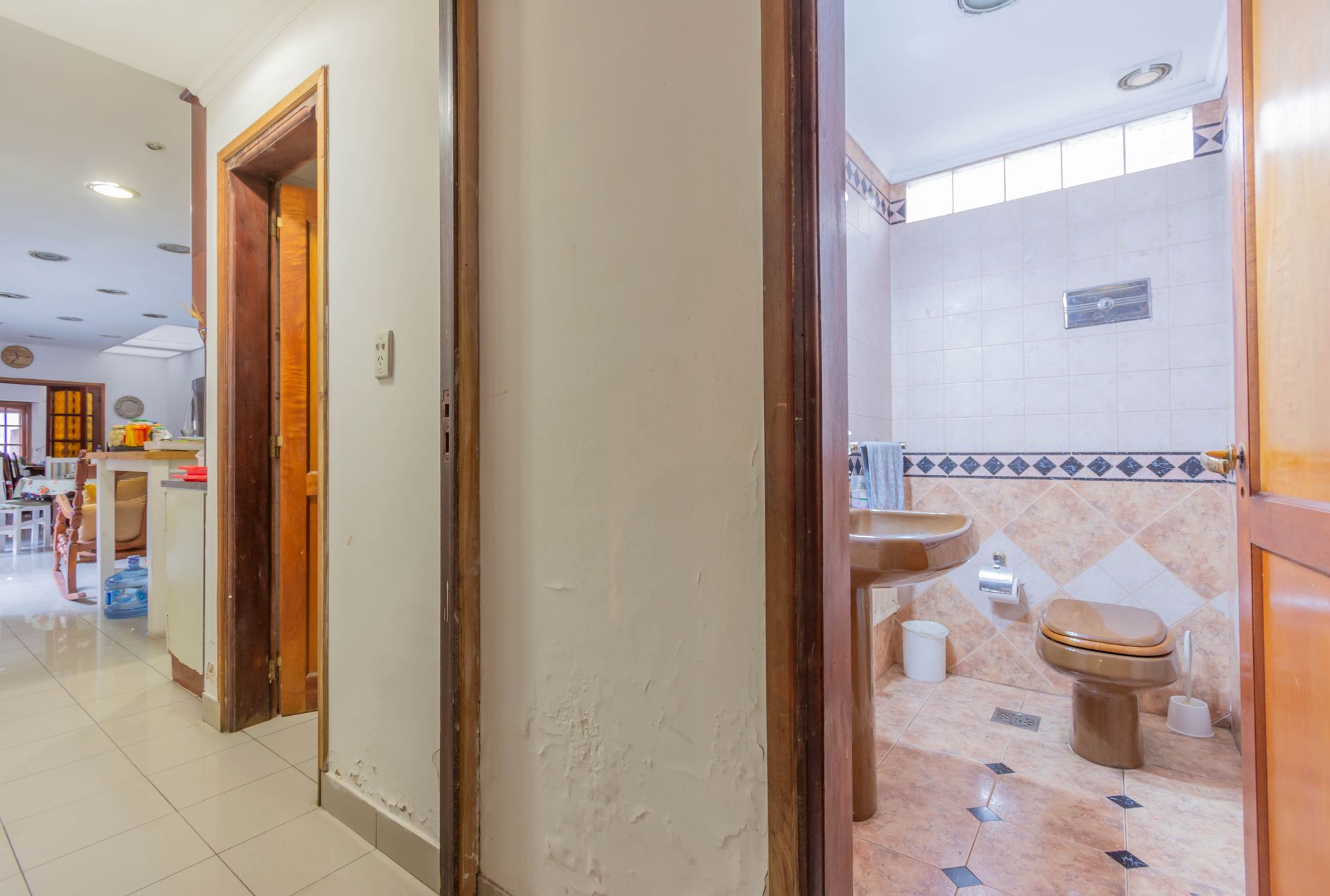 En la planta baja se abre un amplio living luminoso que conduce a un corredor que da acceso a tres habitaciones espaciosas, cada una equipada con placares empotrados. Tres baños completos y un toilette adicional garantizan comodidad para la familia y los invitados. La cocina, integrada con la sala de desayunador y un espacio libre, ofrece versatilidad y practicidad. Un garaje cubierto para dos autos y una cochera al aire libre para otro vehículo y almacenamiento completan el diseño. Un patio interno aporta luz natural a toda la casa, mientras que otro patio con parrilla invita a disfrutar de reuniones al aire libre. Un área de almacenamiento alberga la caldera y el tanque, asegurando eficiencia y espacio adicional.