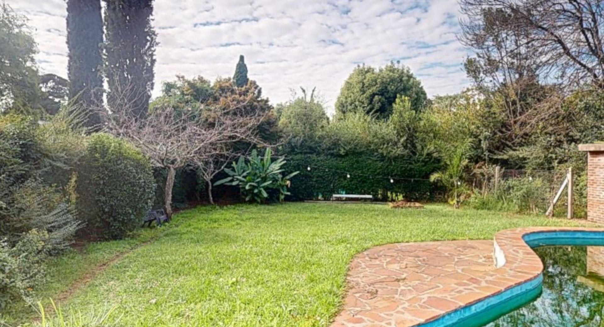 En la planta baja se ubica una recepción que conduce al amplio living comedor con hogar a leña y salida directa al parque. El espacio incluye un baño completo, una cocina amueblada, lavadero y una dependencia de servicio que puede funcionar como escritorio o dormitorio adicional. Un acceso al sótano multiuso completa la zona de servicios.