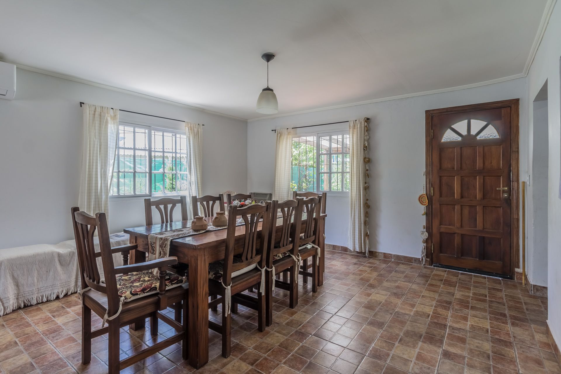 Casa de una sola planta ubicada en el corazón de Don Torcuato, sobre un lote de 950 m². El ingreso abre a un amplio living comedor de 8,50 × 4,50 m, sin columnas ni divisiones, con ventanas laterales y un gran ventanal corrido piso‑a‑techo que inunda el ambiente de luz natural. El toilette de recepción, totalmente renovado, conecta con la cocina‑comedor diario, de generosas dimensiones y barra semi‑integrada. La cocina cuenta con abundante espacio de almacenamiento en muebles bajo mesada y alacenas, lavavajillas, y un área de conexión para lavadora incorporada tras una puerta corrediza estilo campo. El espacio es ideal para una mesa de seis personas.