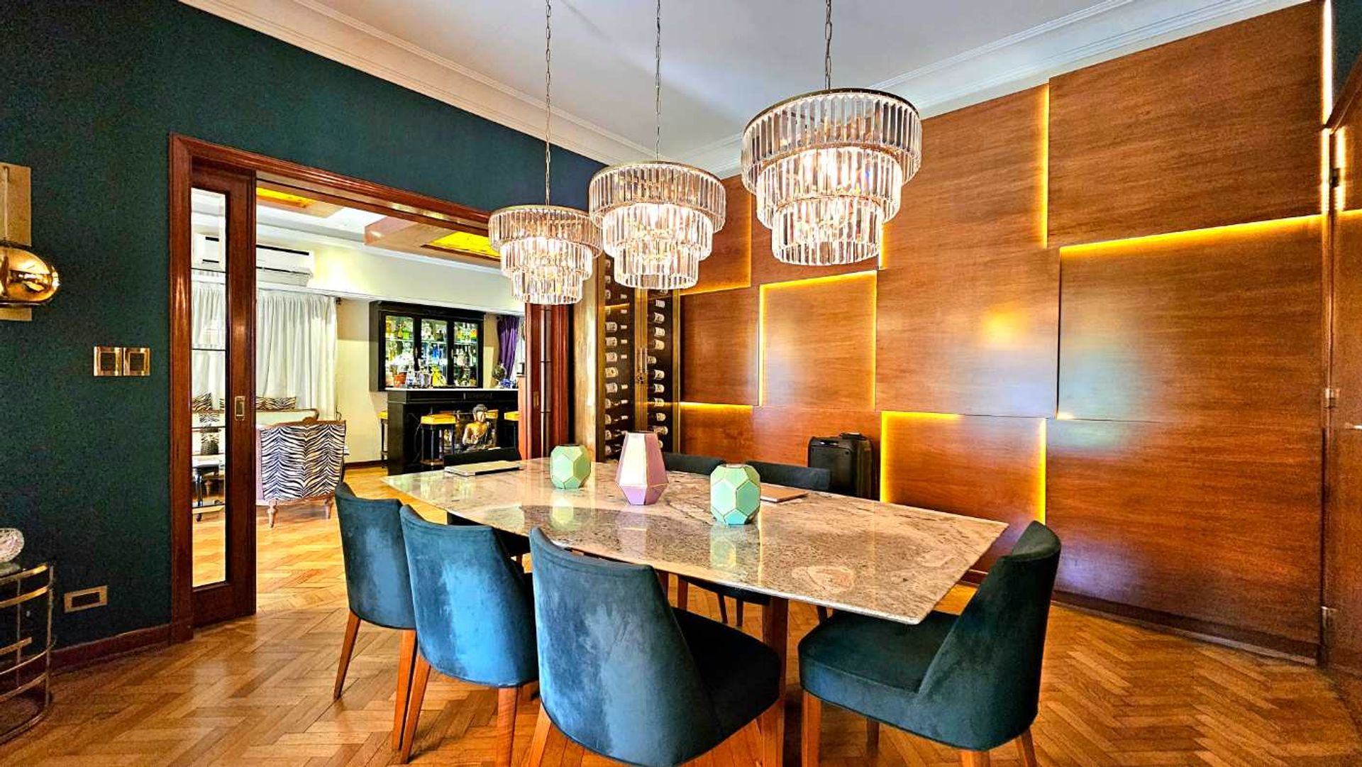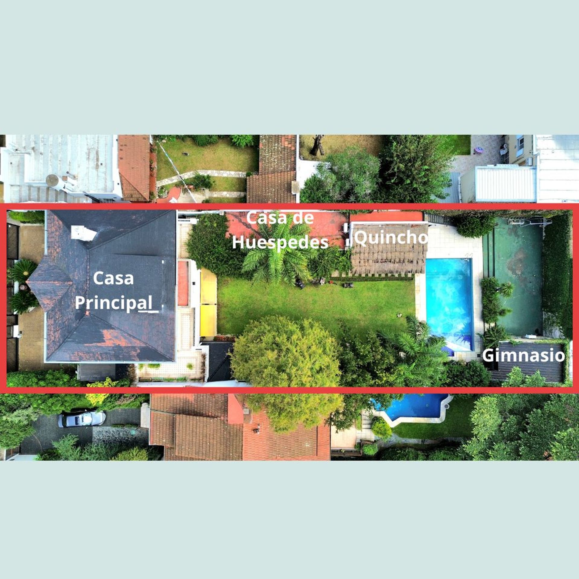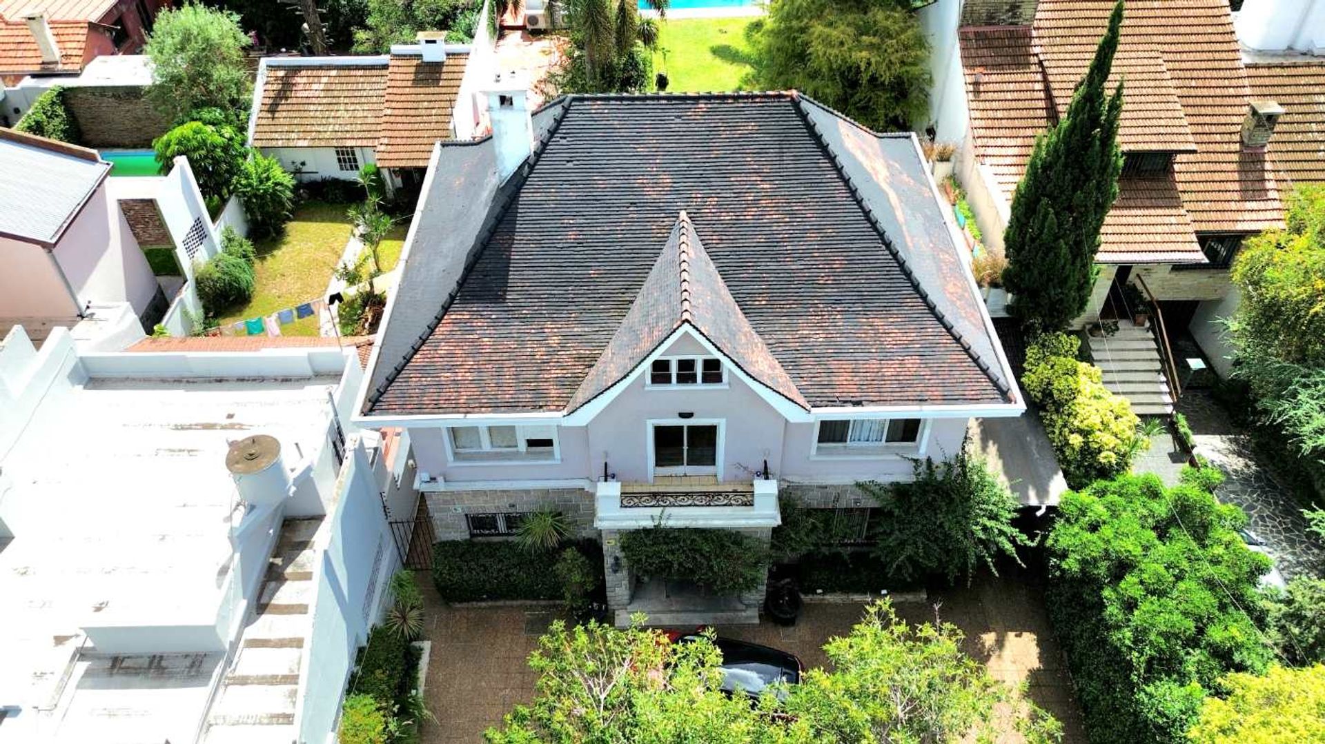 Residencia estilo suizo sobre terreno de 971,48 m² (17,32 m de frente x 56,09 m de fondo) se erige en un entorno arbolado, tranquilo y seguro, con acceso directo desde la autopista Panamericana. La propiedad, perfectamente mantenida, conserva sus pisos y acabados originales, ofreciendo un ambiente de elegancia atemporal.