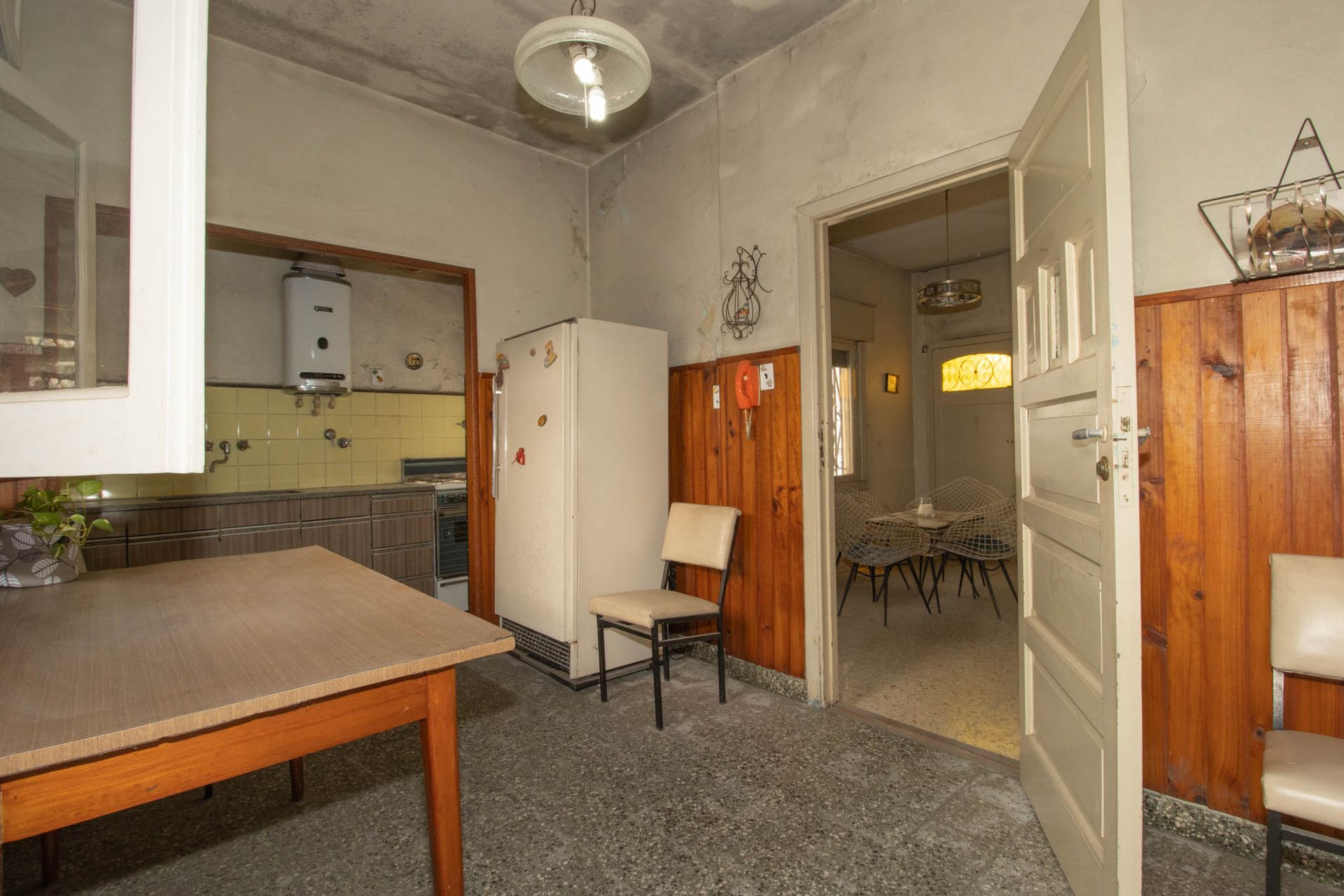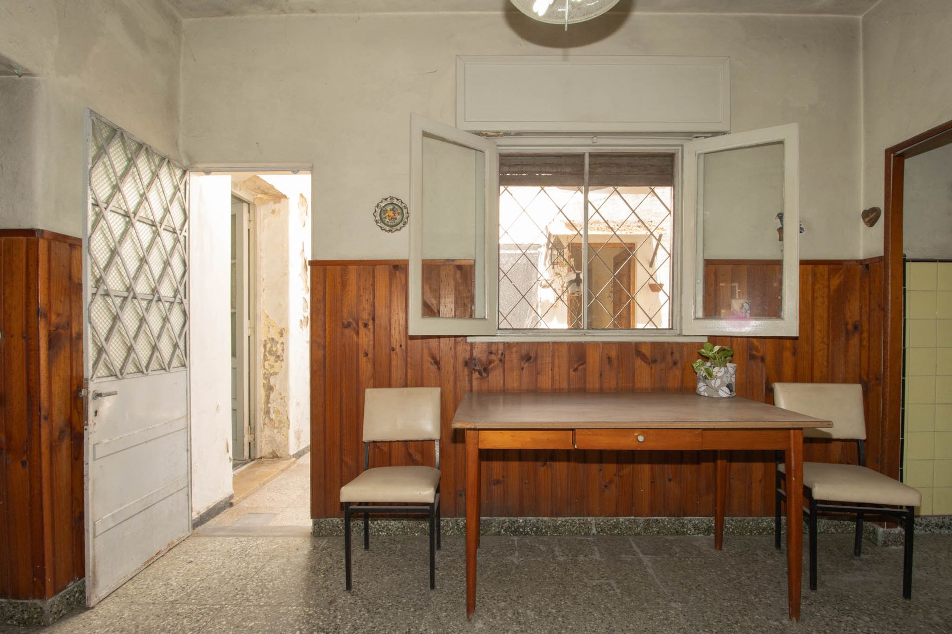 La primera casa, situada en la fachada principal, presenta una distribución funcional con salón, comedor, dormitorio, despensa que también puede funcionar como segundo dormitorio y un baño completo.