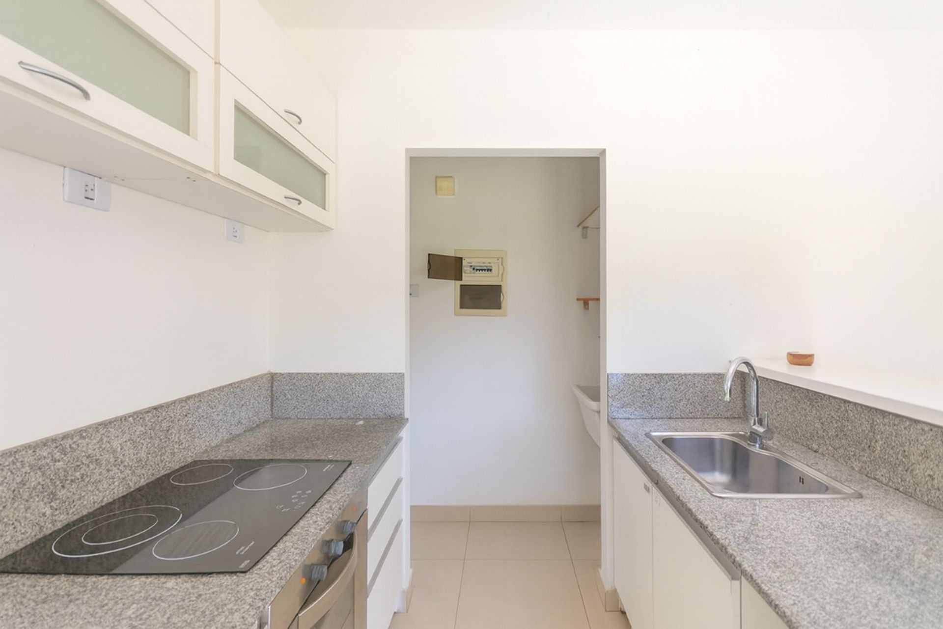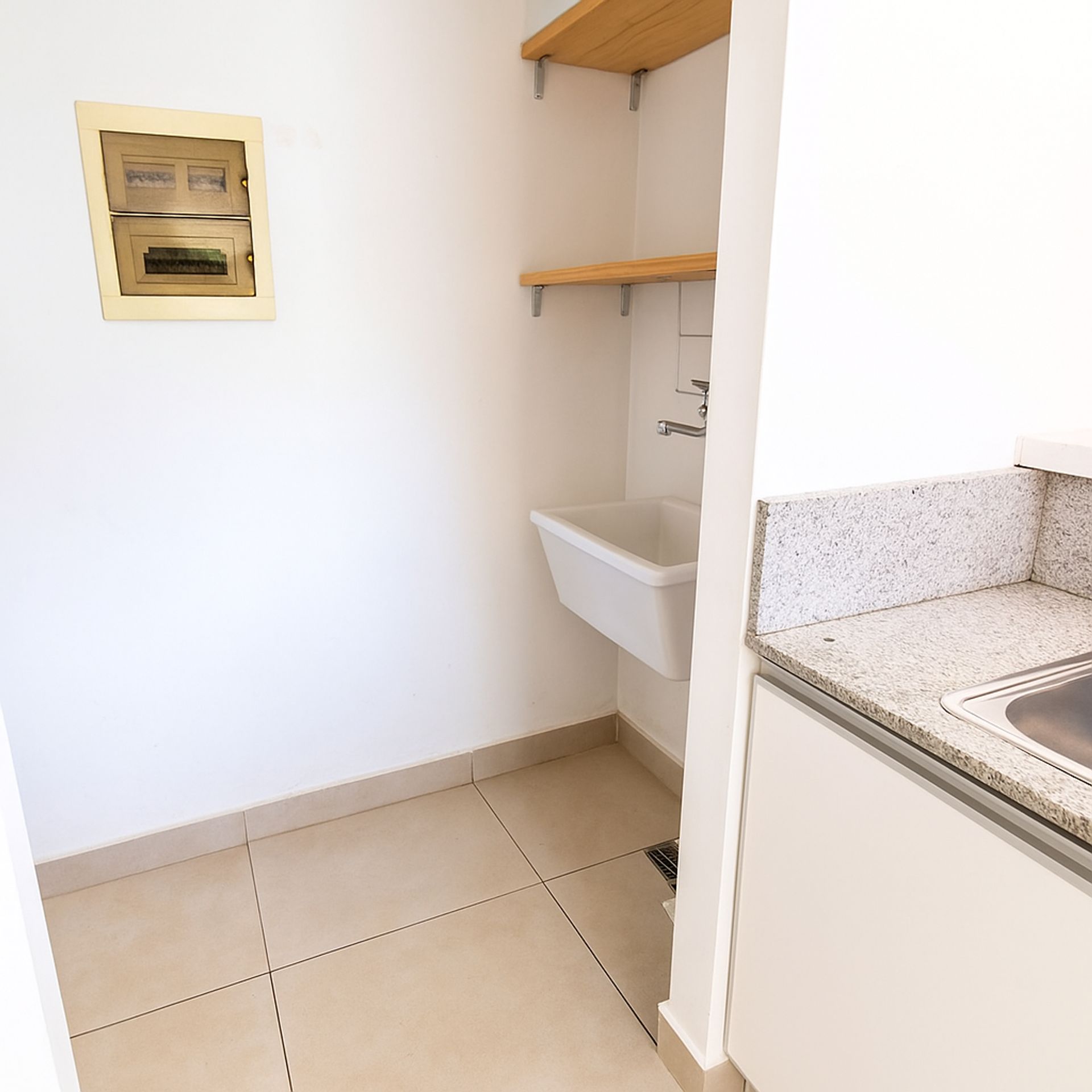 El espacio exterior incluye una galería techada con parrilla y un jardín propio, ideal para reuniones y momentos de relajación al sonido del agua.