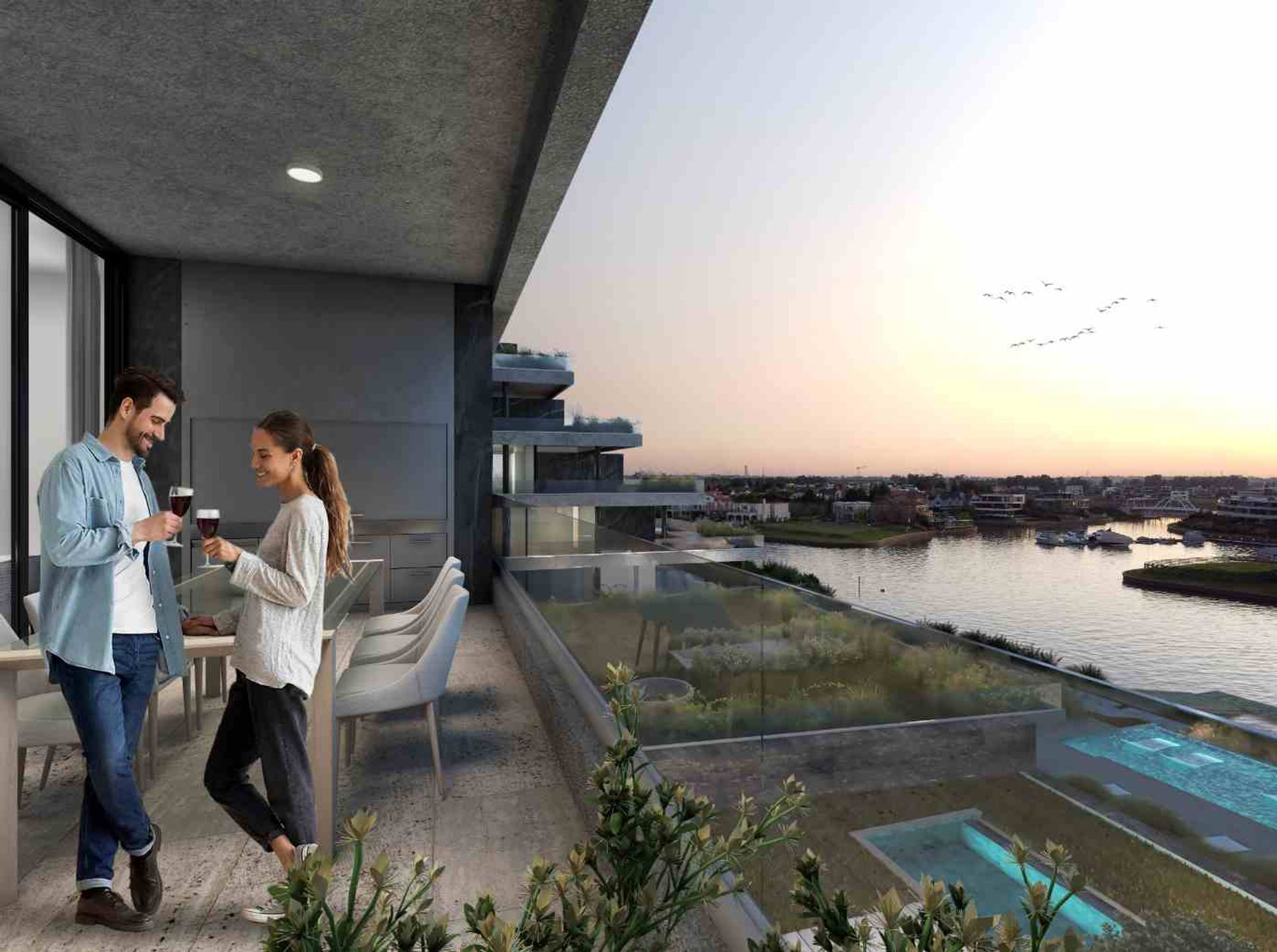 Acqua Marinas se ubica sobre Av. del Puerto, en uno de los últimos terrenos con frente al agua en Nordelta, ofreciendo una experiencia residencial que combina naturaleza, diseño y confort sin sacrificar la conexión con la ciudad.