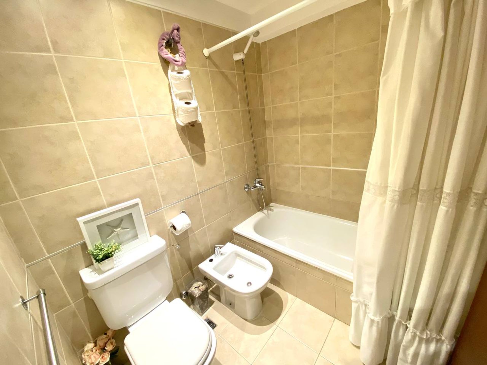 El baño completo cuenta con bañera, mientras que el dormitorio dispone de un placard.