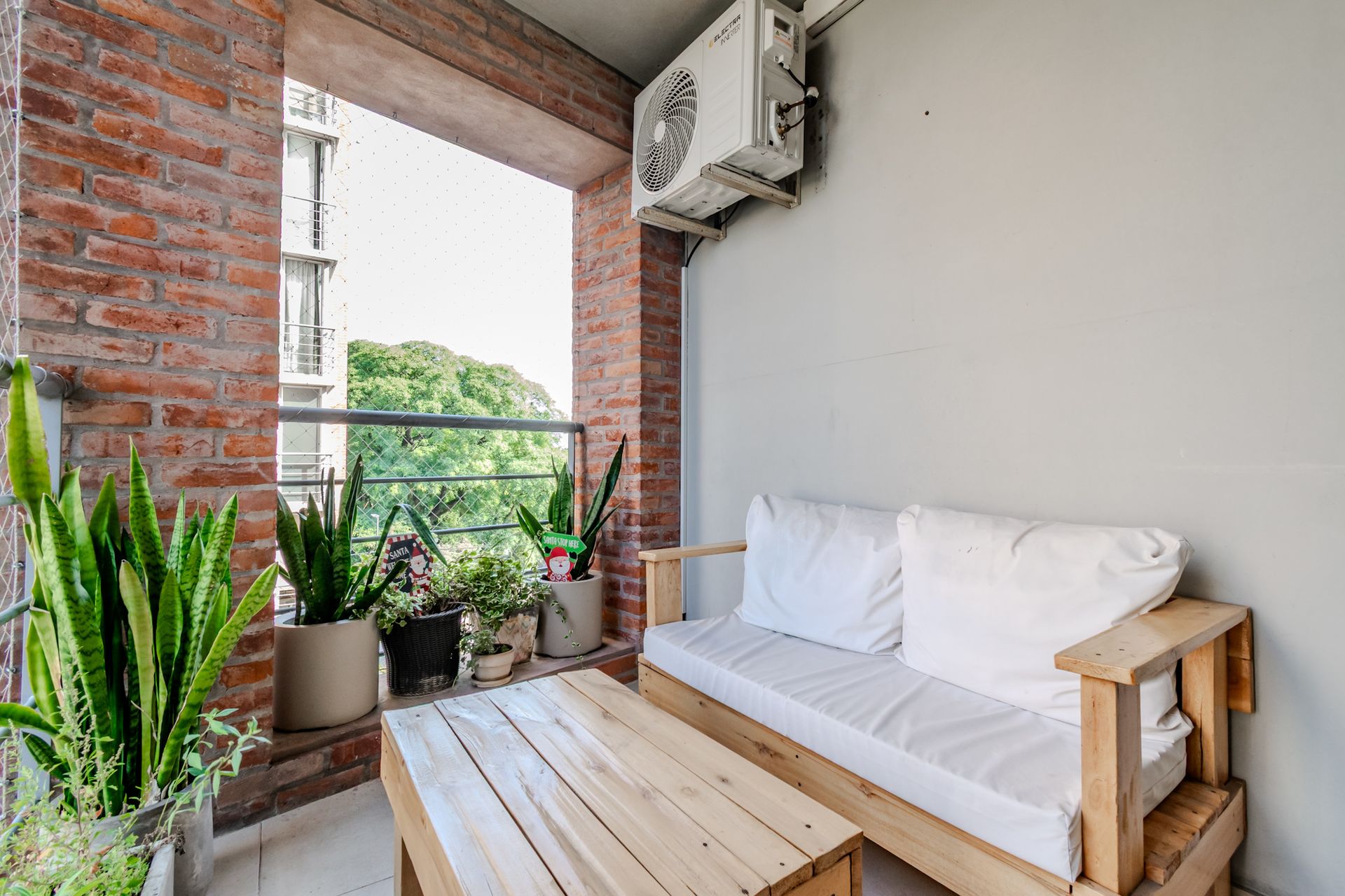 Los acabados son de alta calidad: porcelanato Ilva en los baños, con espejos y mesadas de mármol travertino, grifería FV y artefactos Ferrum. La carpintería exterior presenta marcos y hojas de aluminio. Los ambientes están climatizados con aires acondicionados Electra y la calefacción y agua caliente se suministran por caldera individual dual Peisa.