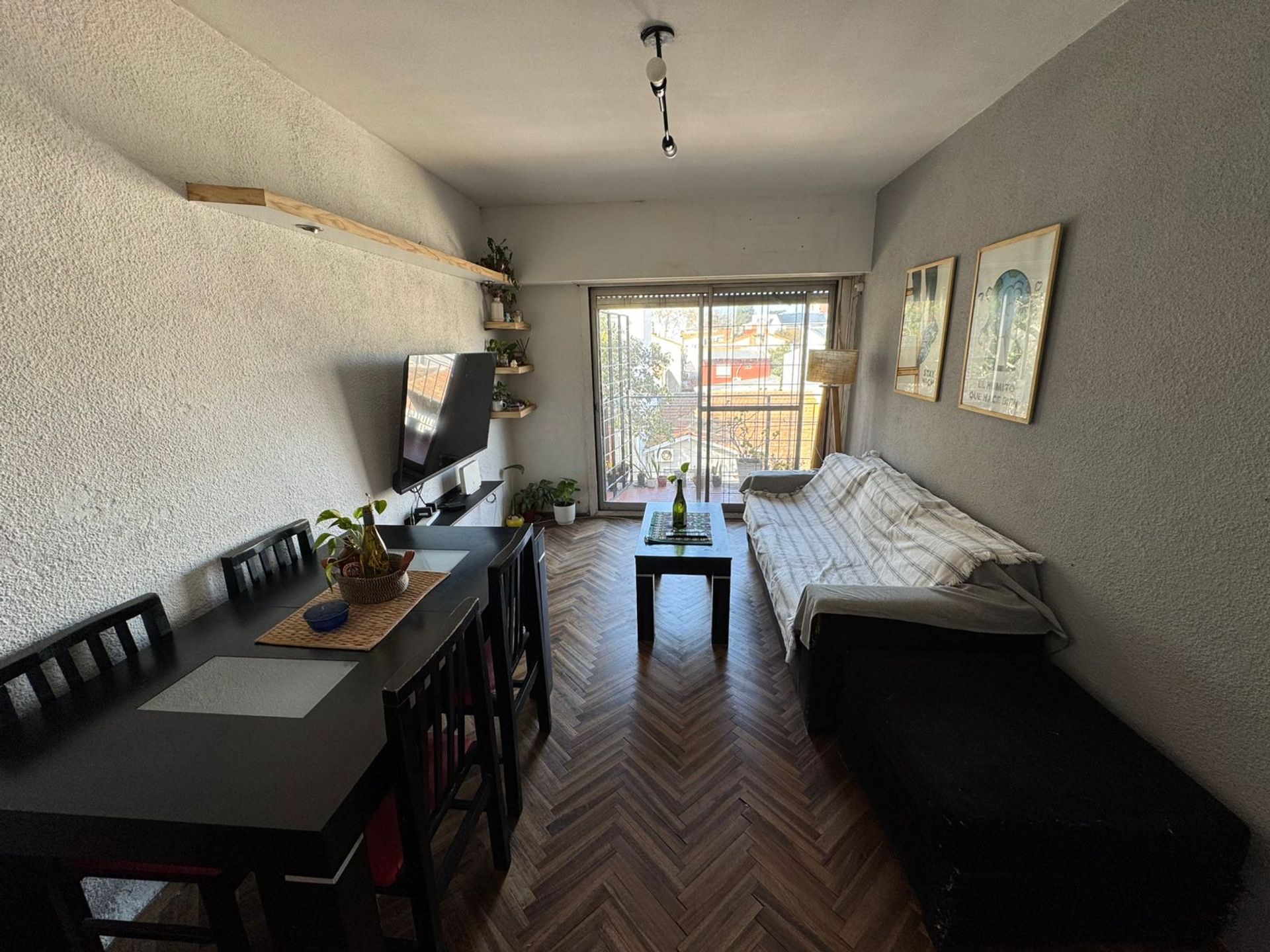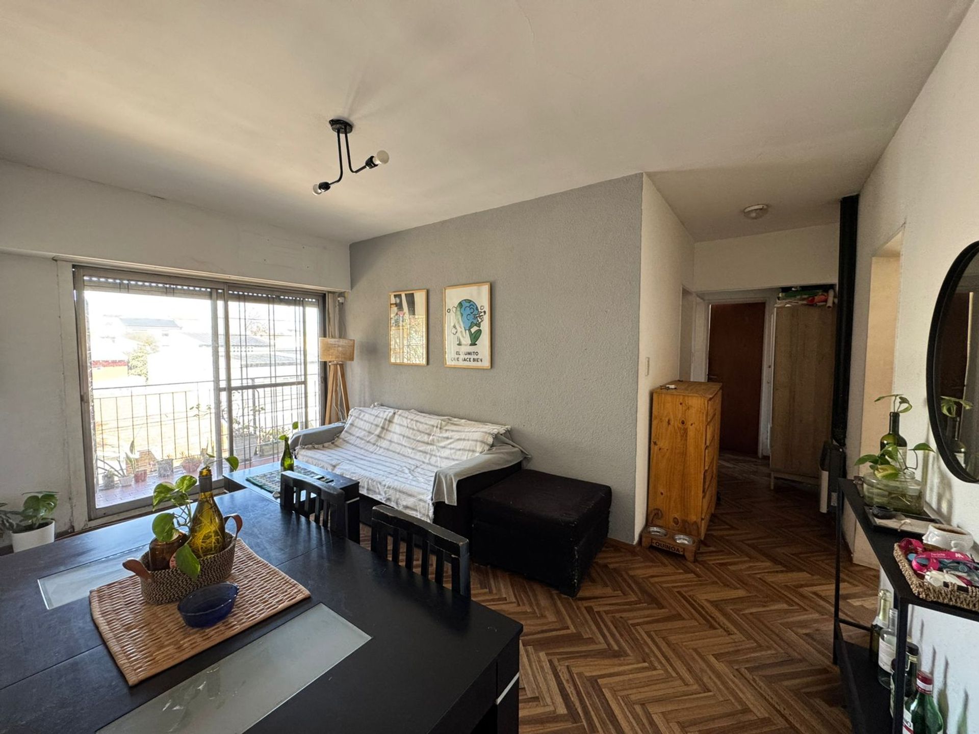 El amplio living comedor mide aproximadamente 4,70 x 3 metros y cuenta con piso de madera parquet en buen estado, carpintería de hierro y una gran ventana que abre a un balcón de 6 x 1 metros. El espacio se complementa con rejas y cortinas enrollables de PVC, brindando privacidad y control de la luminosidad.